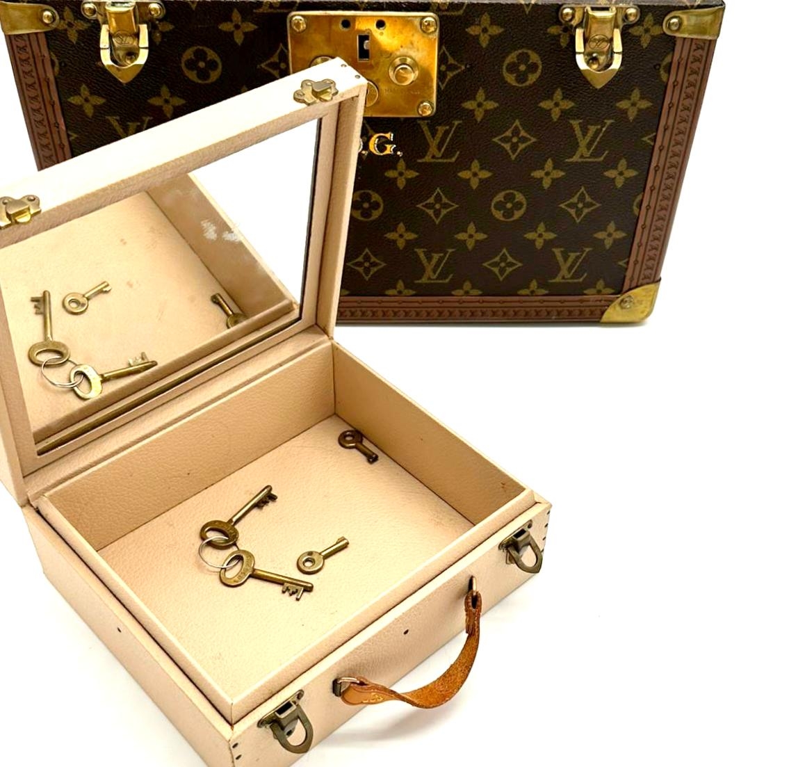 • 1 großes Hauptfach mit Raumteiler und Lederlaschen für Flakons