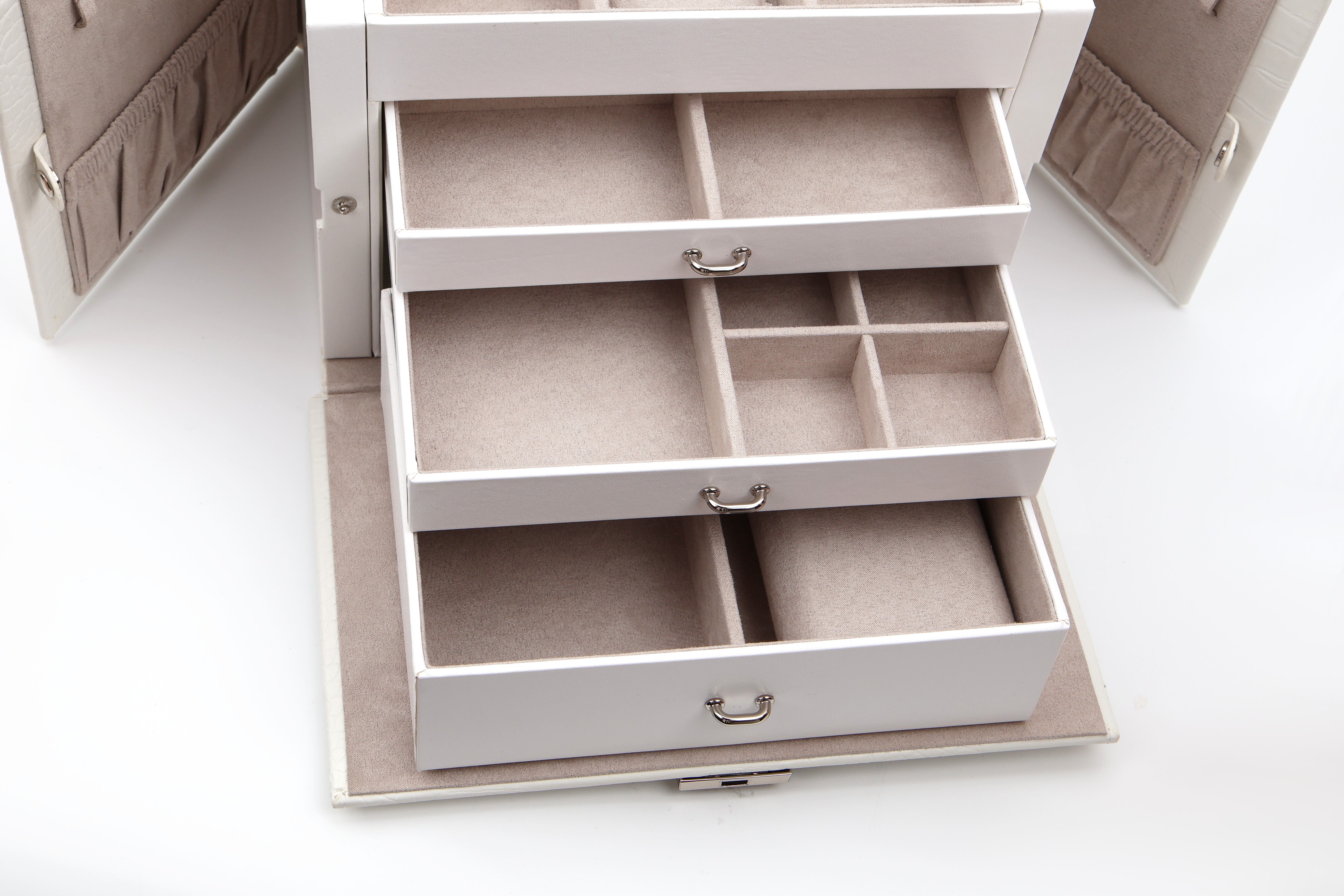 Hellgrauer Schmuckkoffer in Kroko-Optik, Limited Edition, Feinsynthetik, 5 Fächer