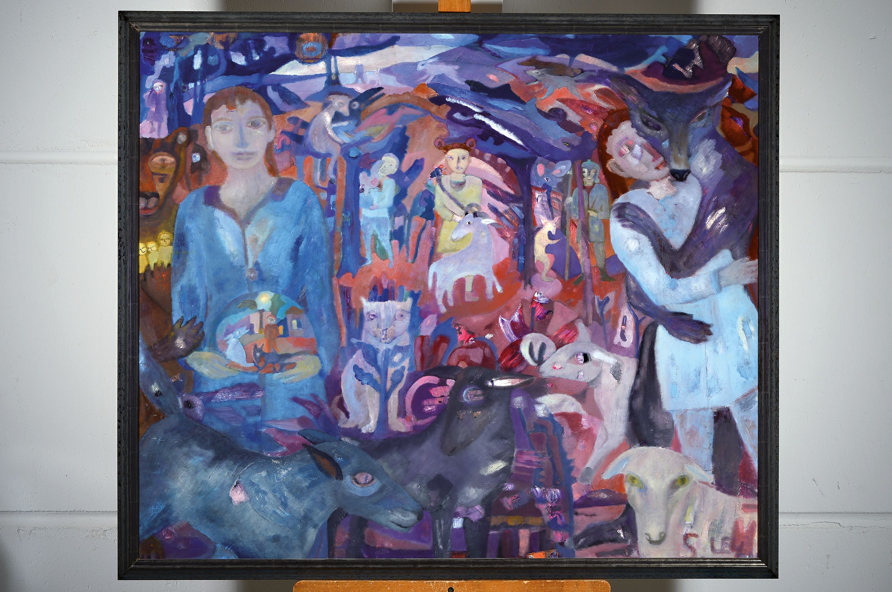 S. Ley, Künstler*in des 20.Jh., abstrakt figurale Komposition, chromatische Harmonie