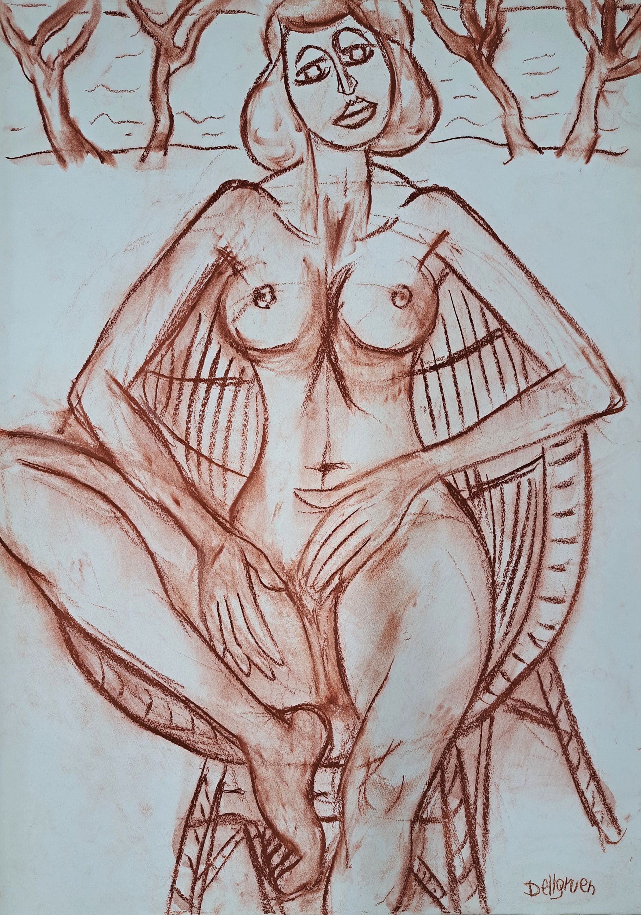 Dresden, hier: sitzender Akt, Rötel auf Papier, rechts unten signiert, ca. 75x53cm