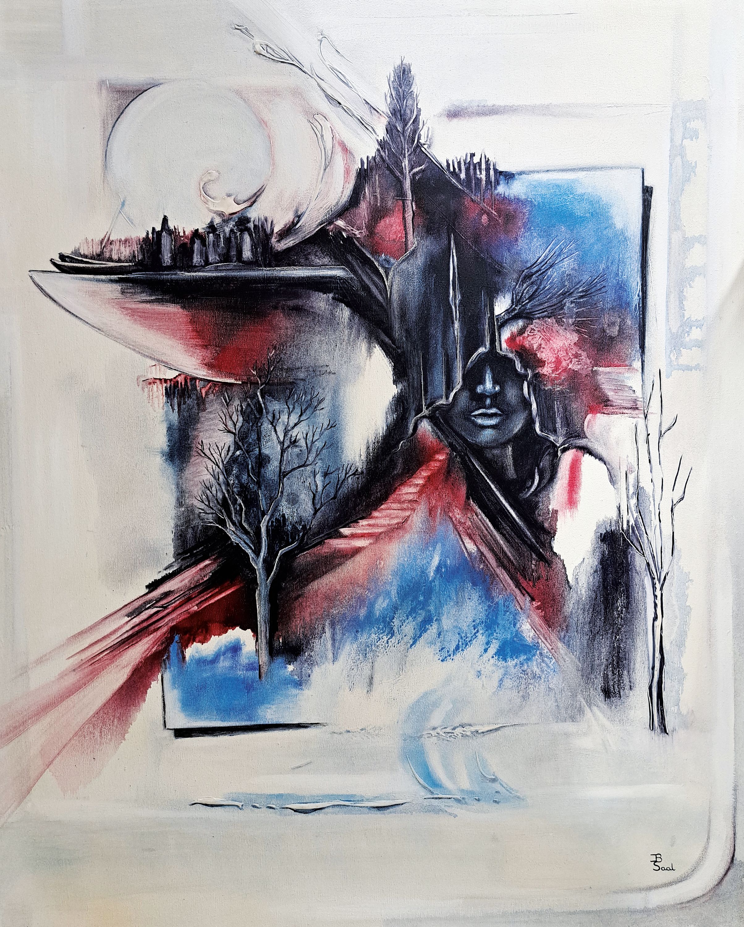 tätig, "Fenster nach Innen" so verso bez., 1991, großformatige Komposition, unten