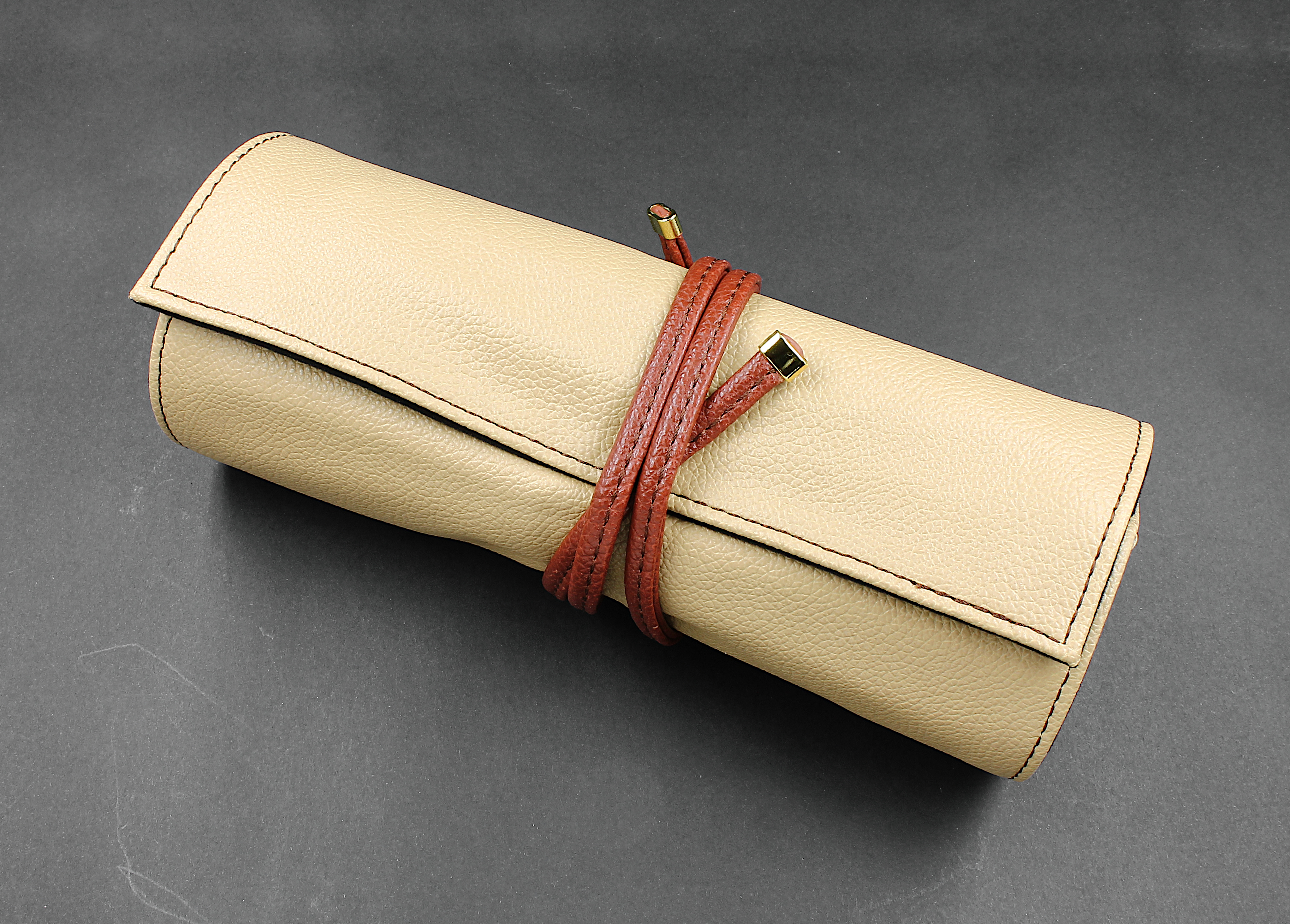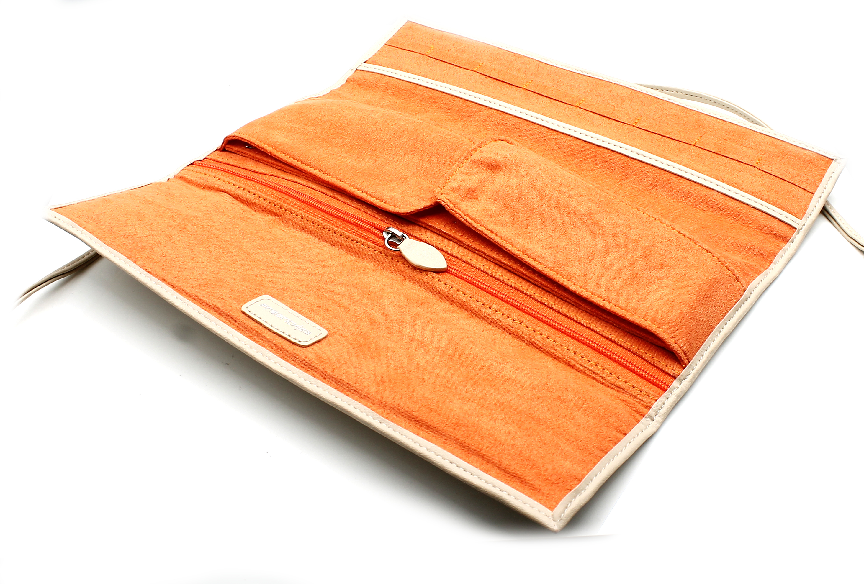 Schmuckrolle aus elfenbeinfarb. Feinsynthetik,Innenausstattung in Orange, abknöpfbares