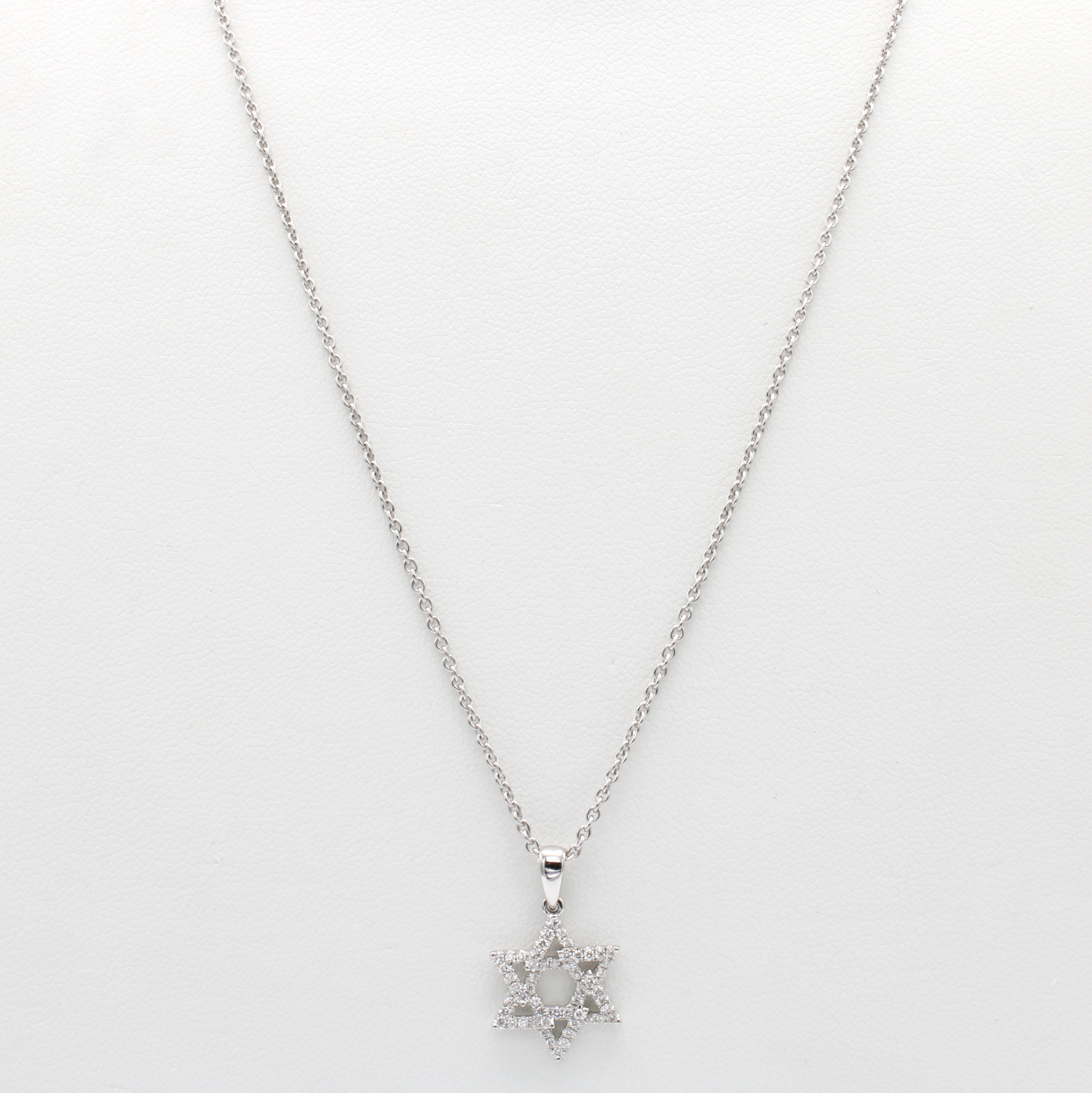Anhänger "Davidstern" mit Brillanten an Kette, WG 750/000, 54 Brill. zus. ca. 0.22 ct feines Weiß/si, L. ca. 42 u. 45 cm Schätzpreis: 1820, - EUR
