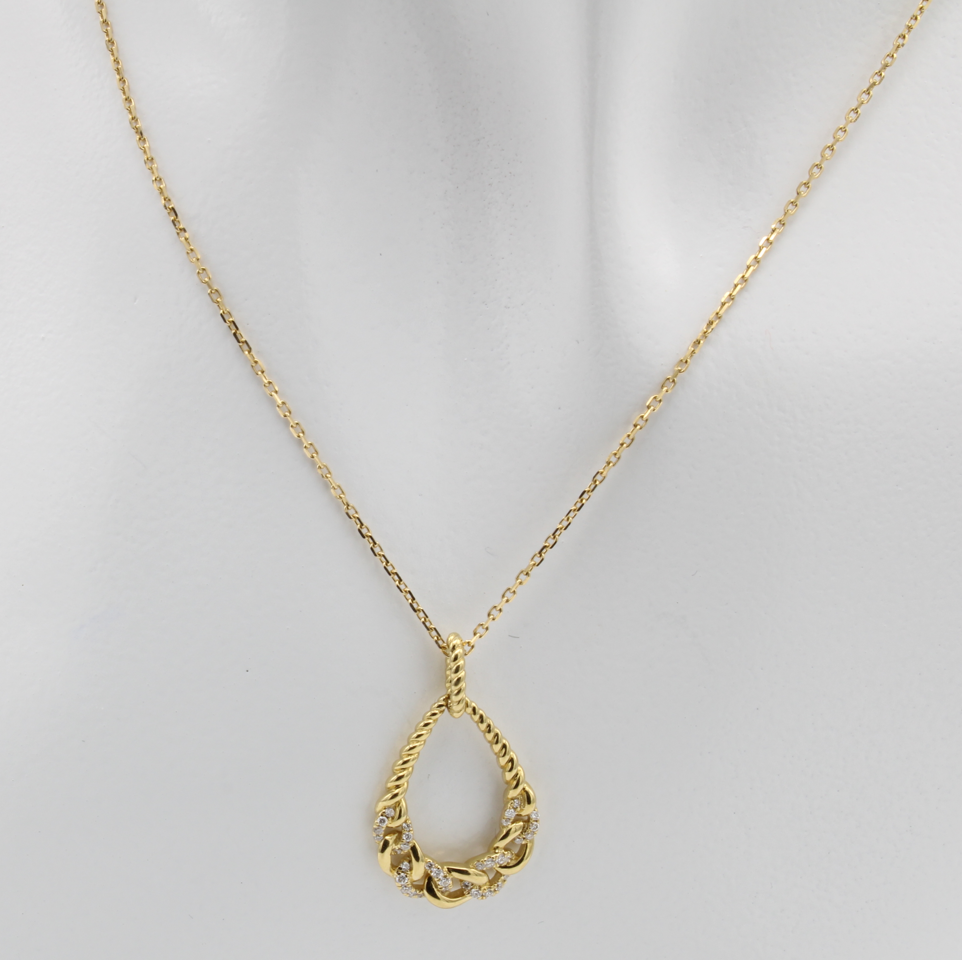 Anhänger mit Brillanten an Kette, GG 750/000, tropfenförm. m. Panzermuster, bes. m.Brill. zus. ca. 0.13 ct feines Weiß/vsi-si, L.ca. 40 u. 43 cm Schätzpreis: 2300, - EUR