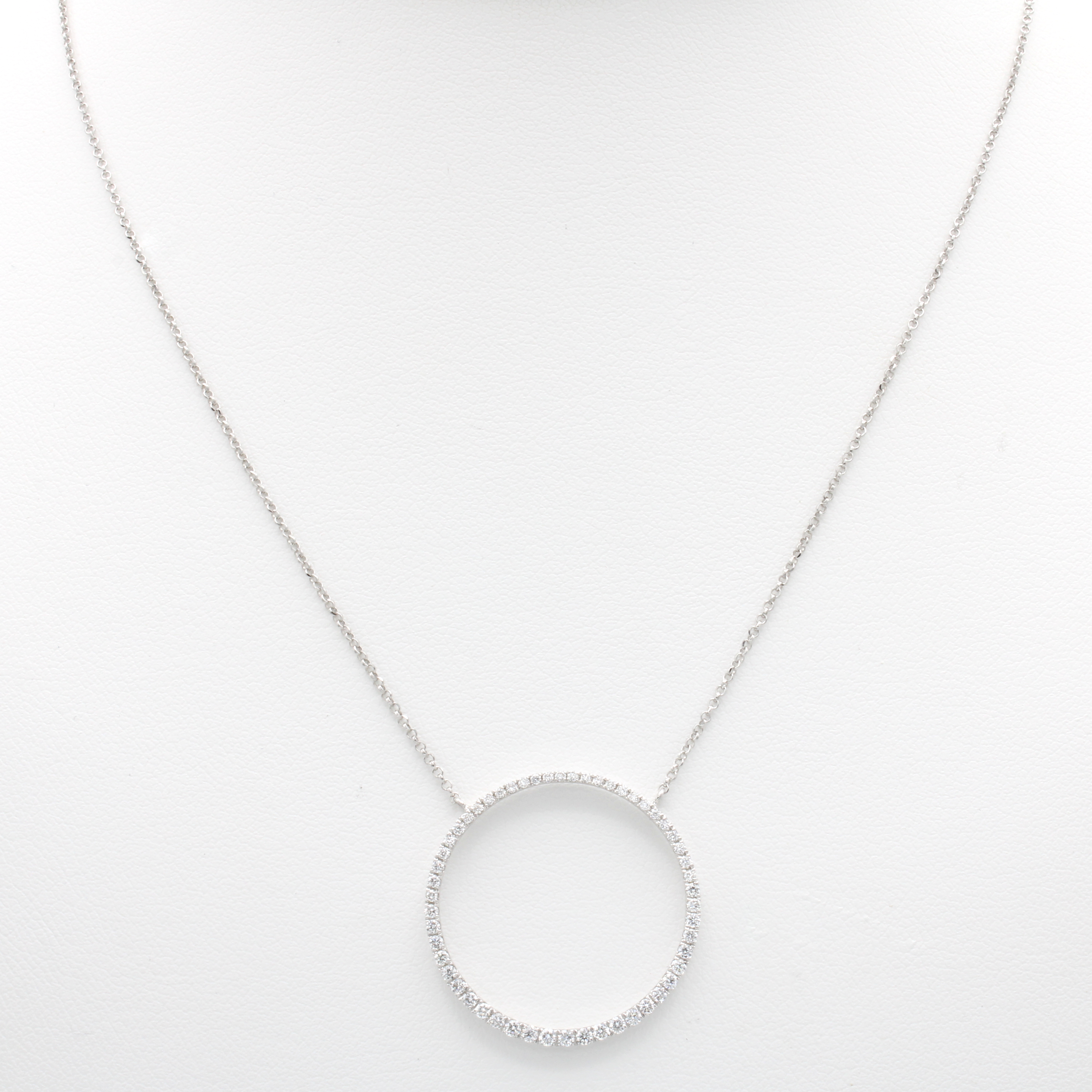 Collier mit Brillanten, WG 750/000, kreisförm. Element bes. m. 54 Brill. zus. ca. 0.39 ct feines Weiß/si, Federringschl., L. ca. 38, 41 u. 43 cm Schätzpreis: 2310, - EUR