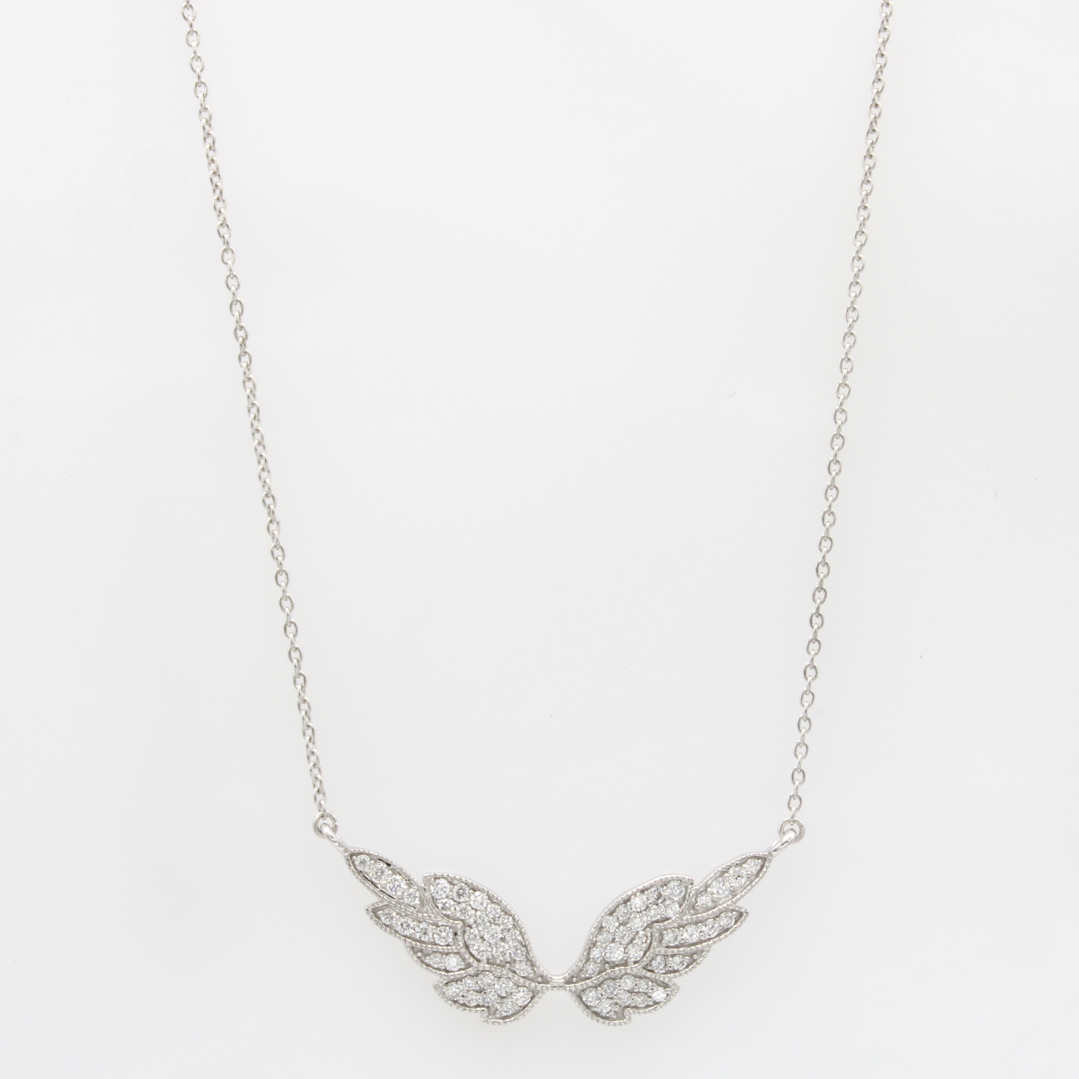 Collier "Flügel" mit Brillanten, WG 750/000, Flügel bes. m. 66 Brill. zus. ca. 0.34 ct feines Weiß/si, Federringschl., L. ca.48 cm Schätzpreis: 2030, - EUR