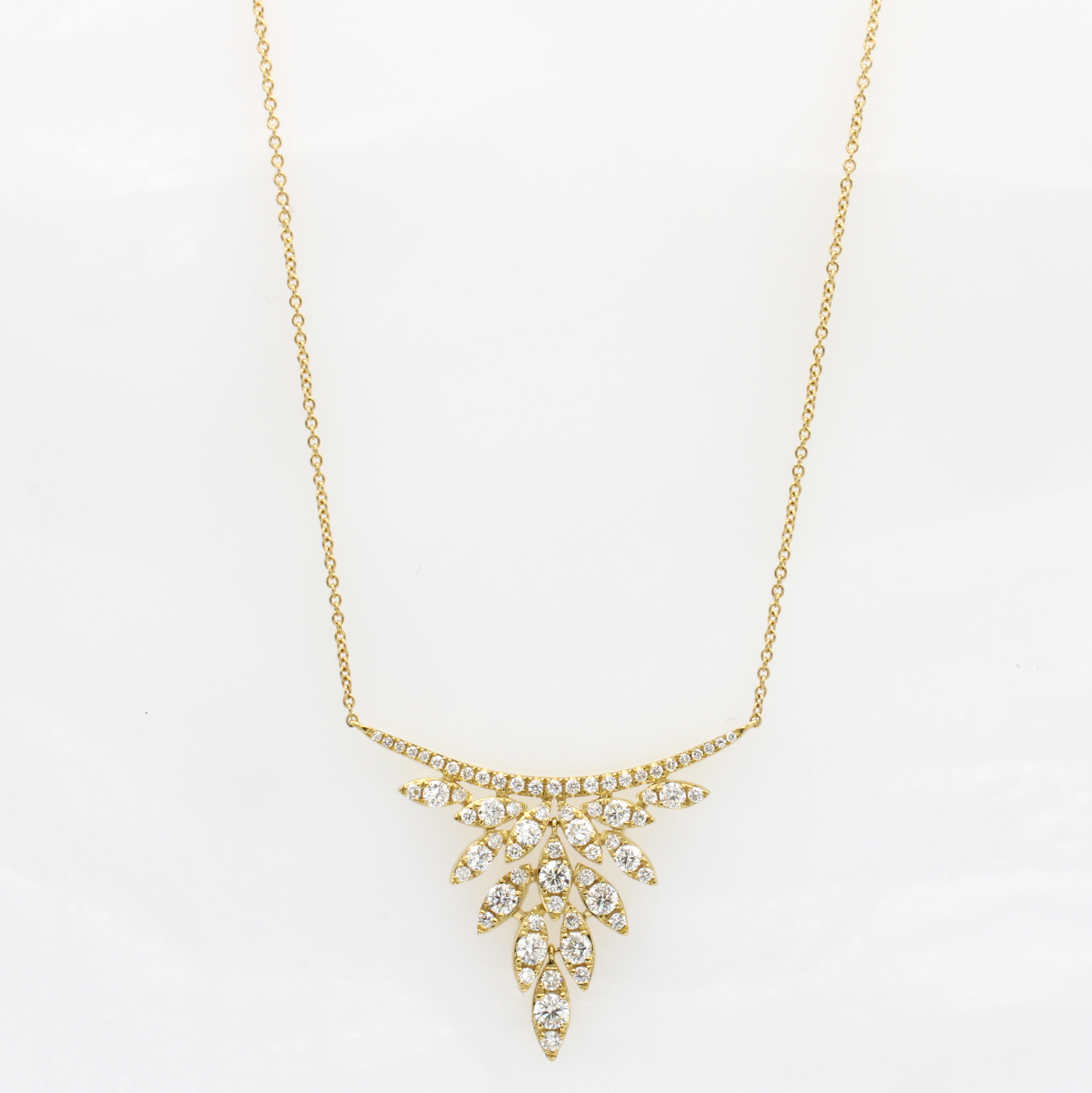 Collier mit Brillanten, GG 750/000, Steg m. navetteförm. Abhängungen, 67 Brill. zus. ca. 1.00 ct feines Weiß/si, L. ca. 40.5,43 u. 45.5cm Schätzpreis: 4620, - EUR