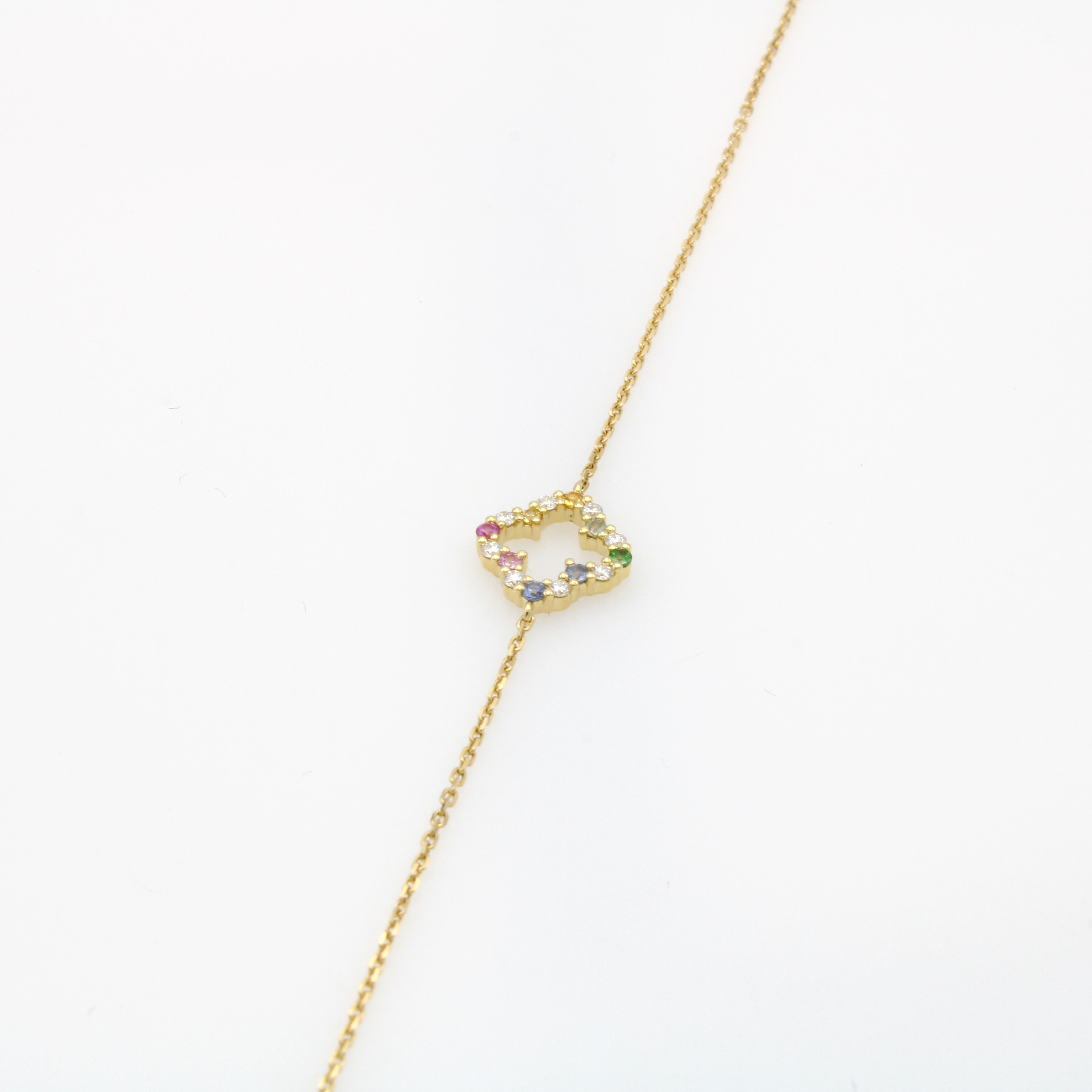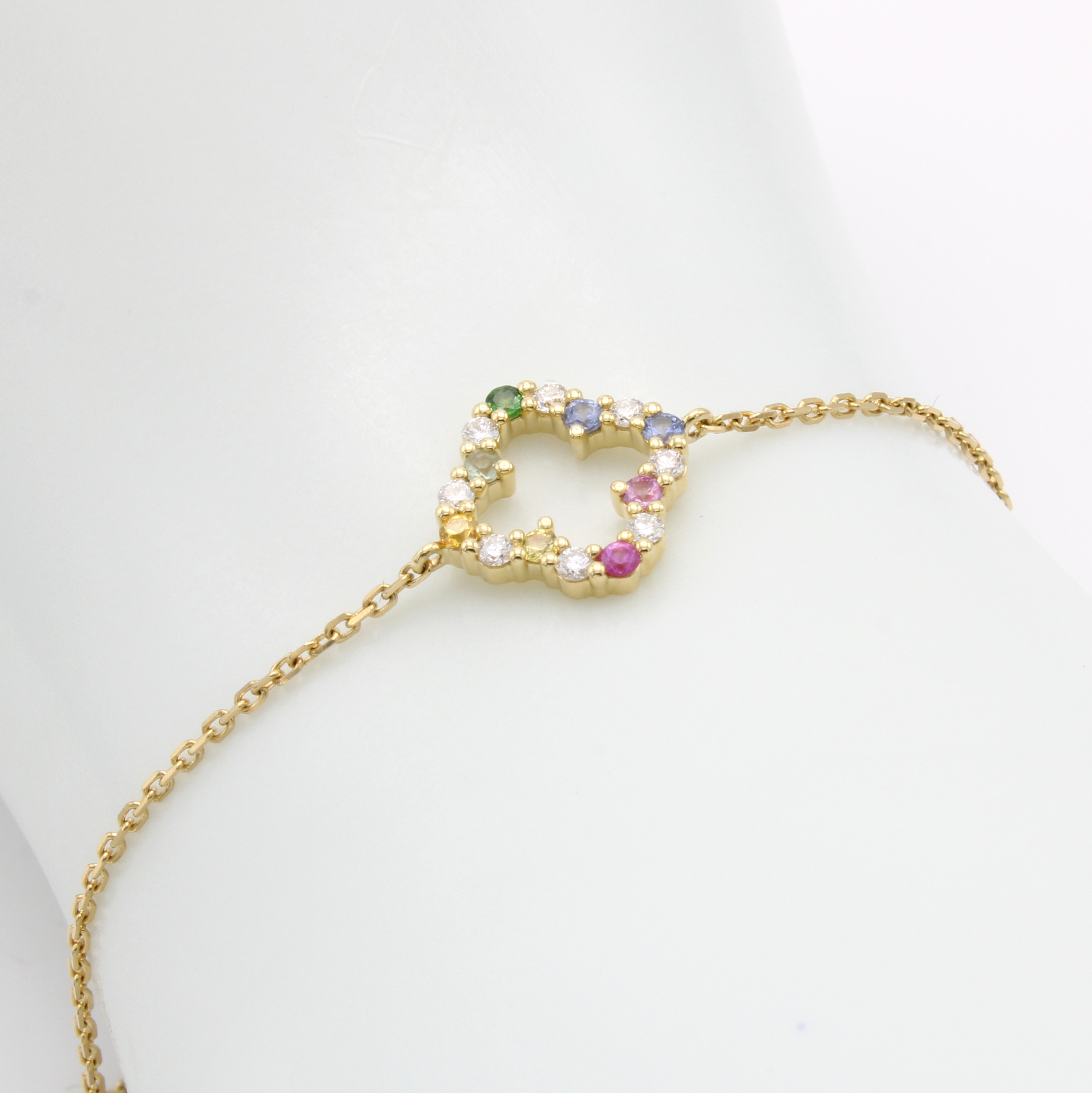 Armband "Blüte" mit Farbsteinen und Brillanten, GG 750/000, 7 fancy Saphire u. 1 Tsavorith zus. ca. 0.23 ct, 8 Brill. zus. ca. 0.14 ct feines Weiß/si, L. ca. 16.5 u. 18 cm Schätzpreis: 1220, - EUR
