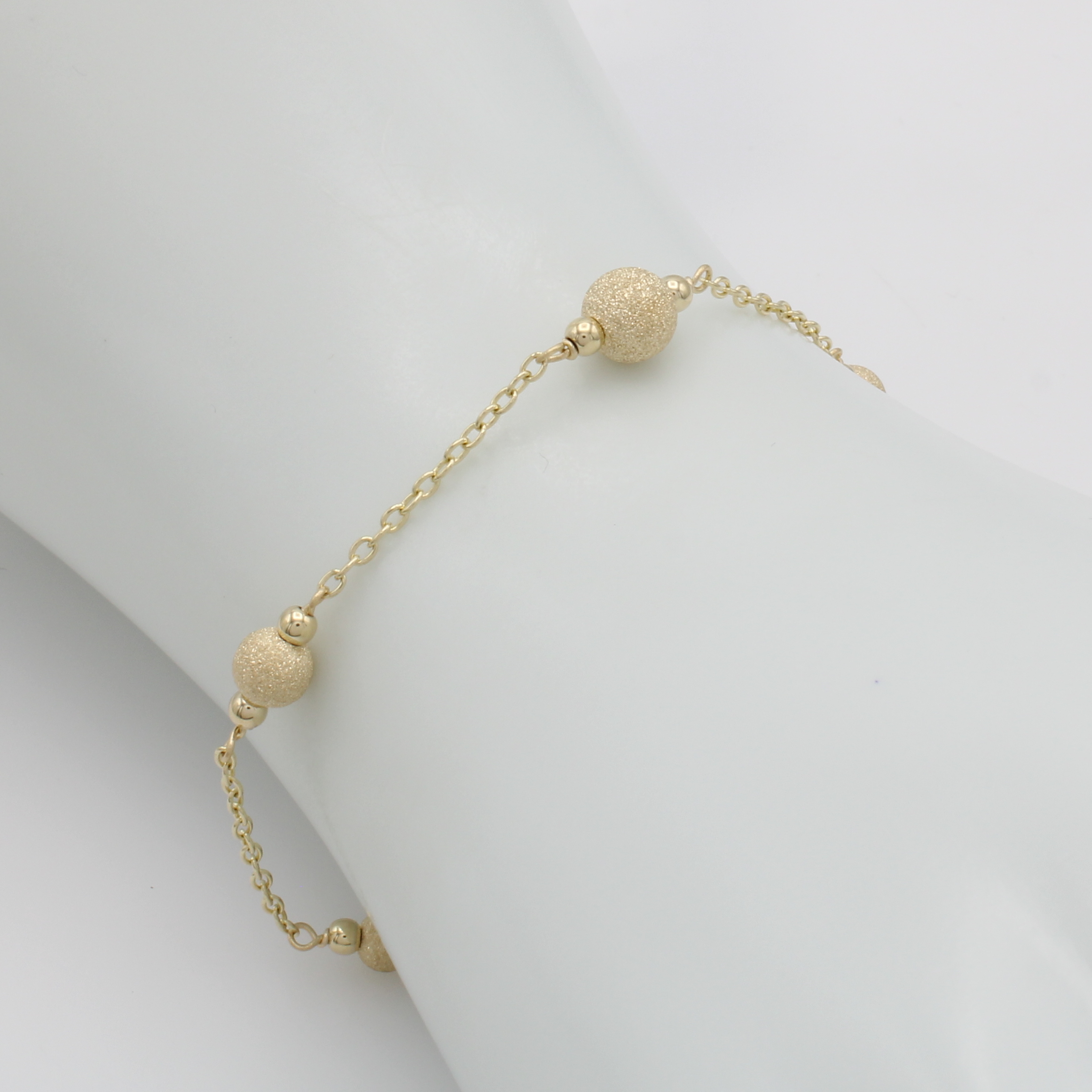 Armband, GG 585/000, satinierte Kügelchen, Karabinerschl., L. ca. 18-20 cm