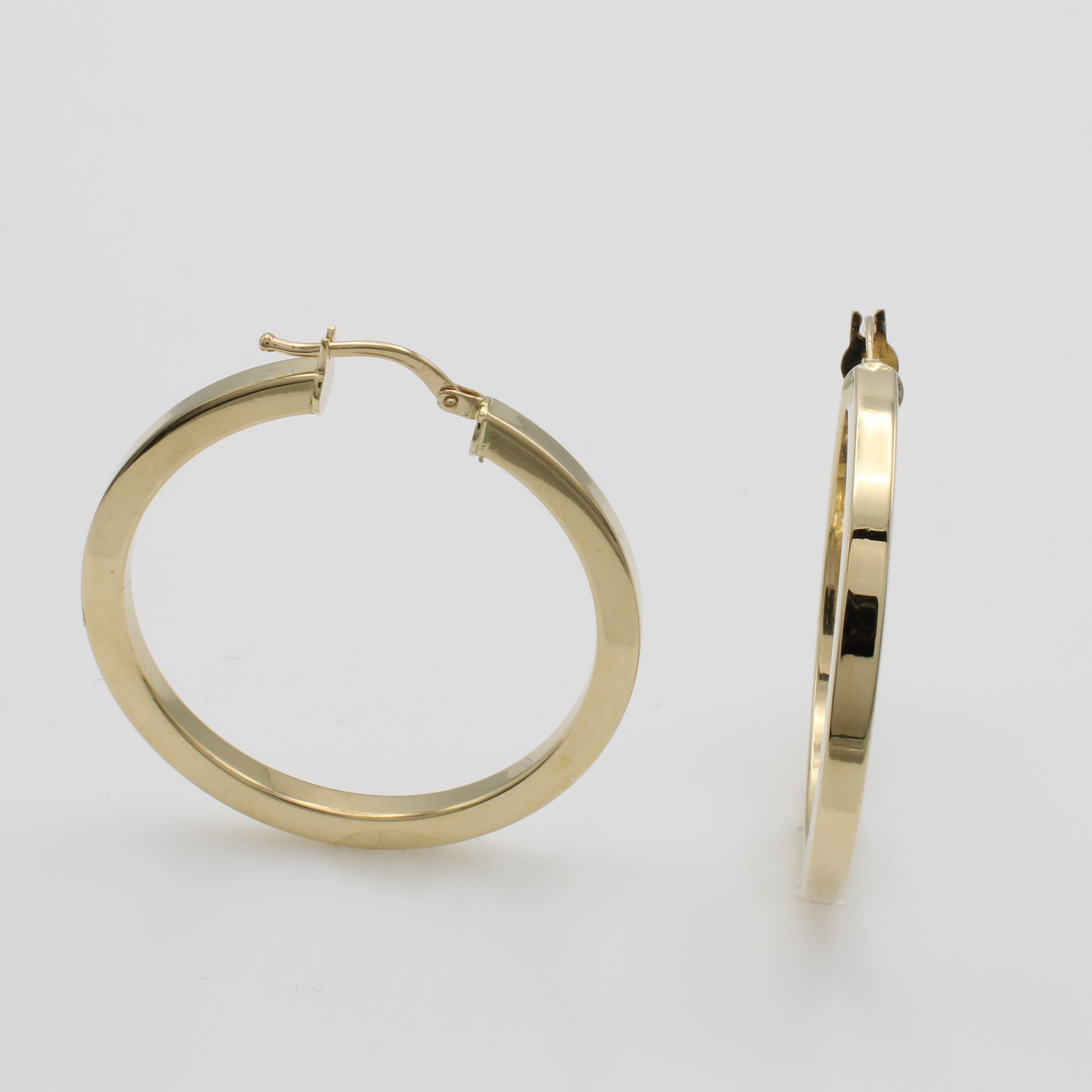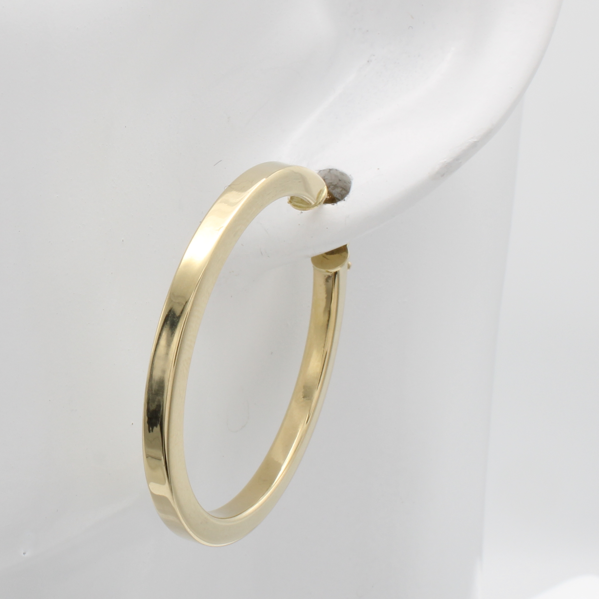 Paar Creolen, GG 585/000, eckig, poliert, D. ca. 30 mm