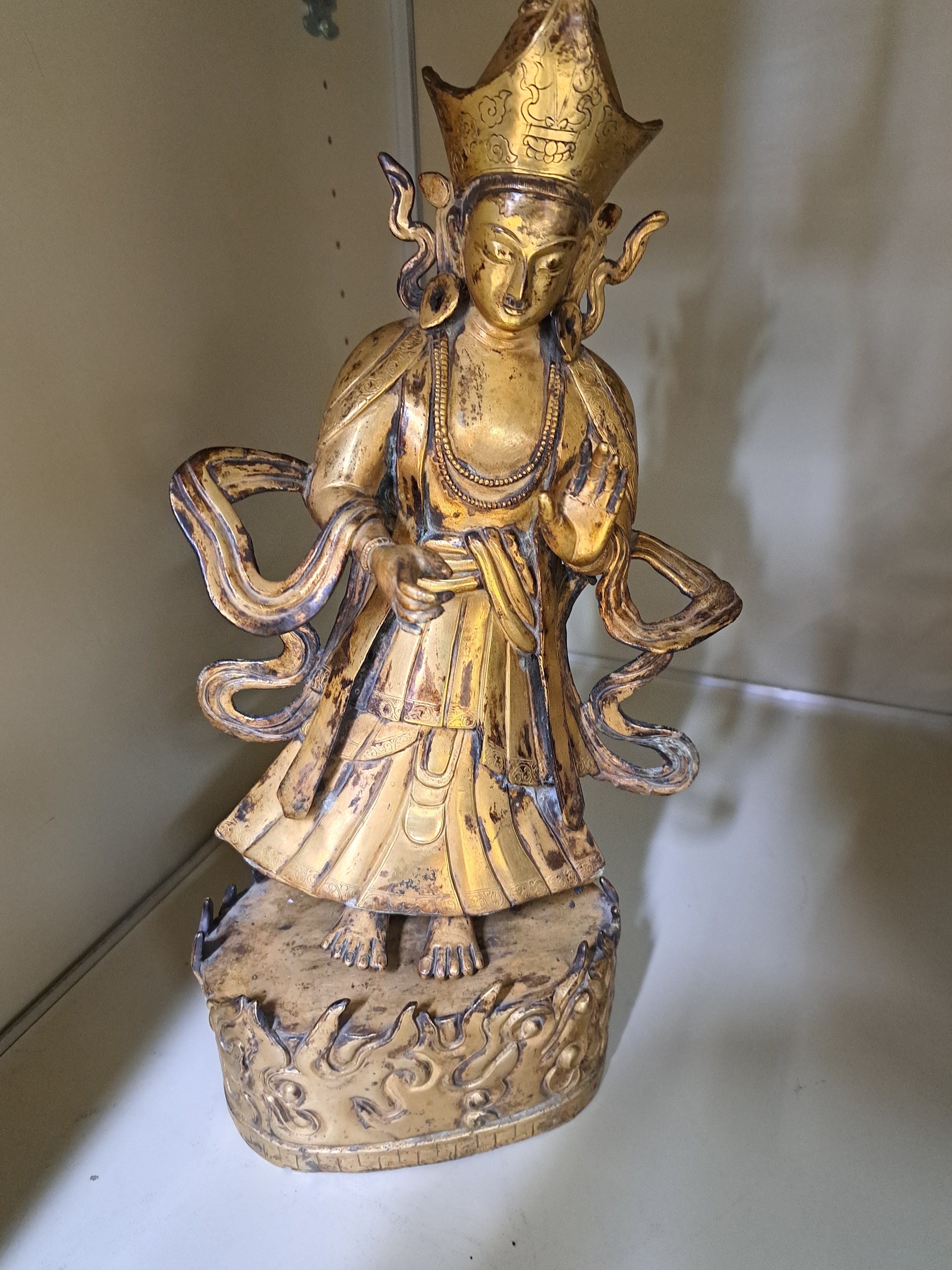 Padmasambhava auf Flammensockel, China, um 1920-50, Kupferlegierung, vergoldet, H.