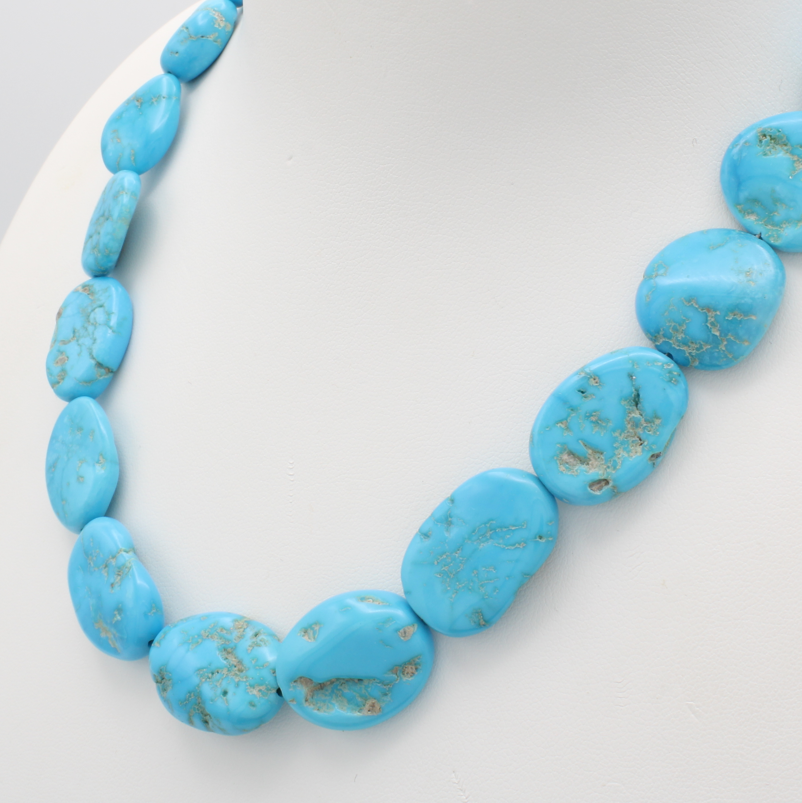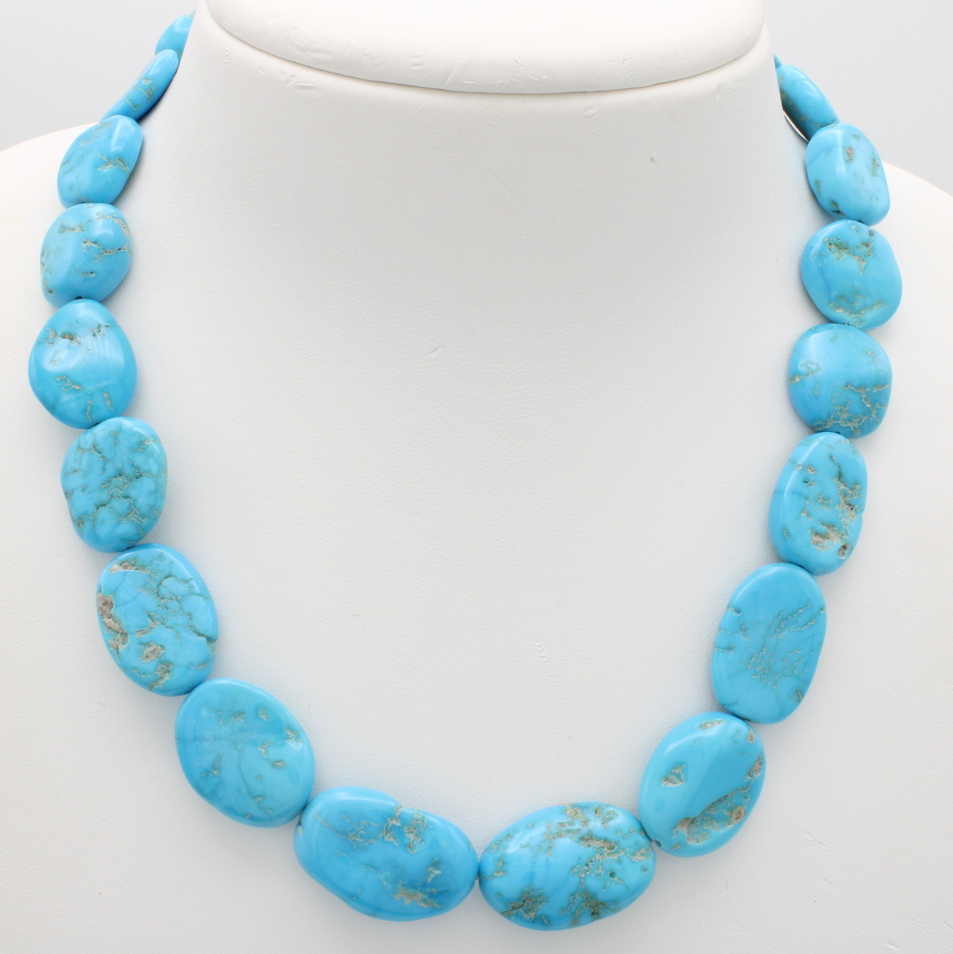 Amerikanische Türkiskette, Karabinerschl. 925er Silber, barocke Türkise aus der Sleeping Beauty Mine, L. ca. 48 cm Schätzpreis: 1890, - EUR