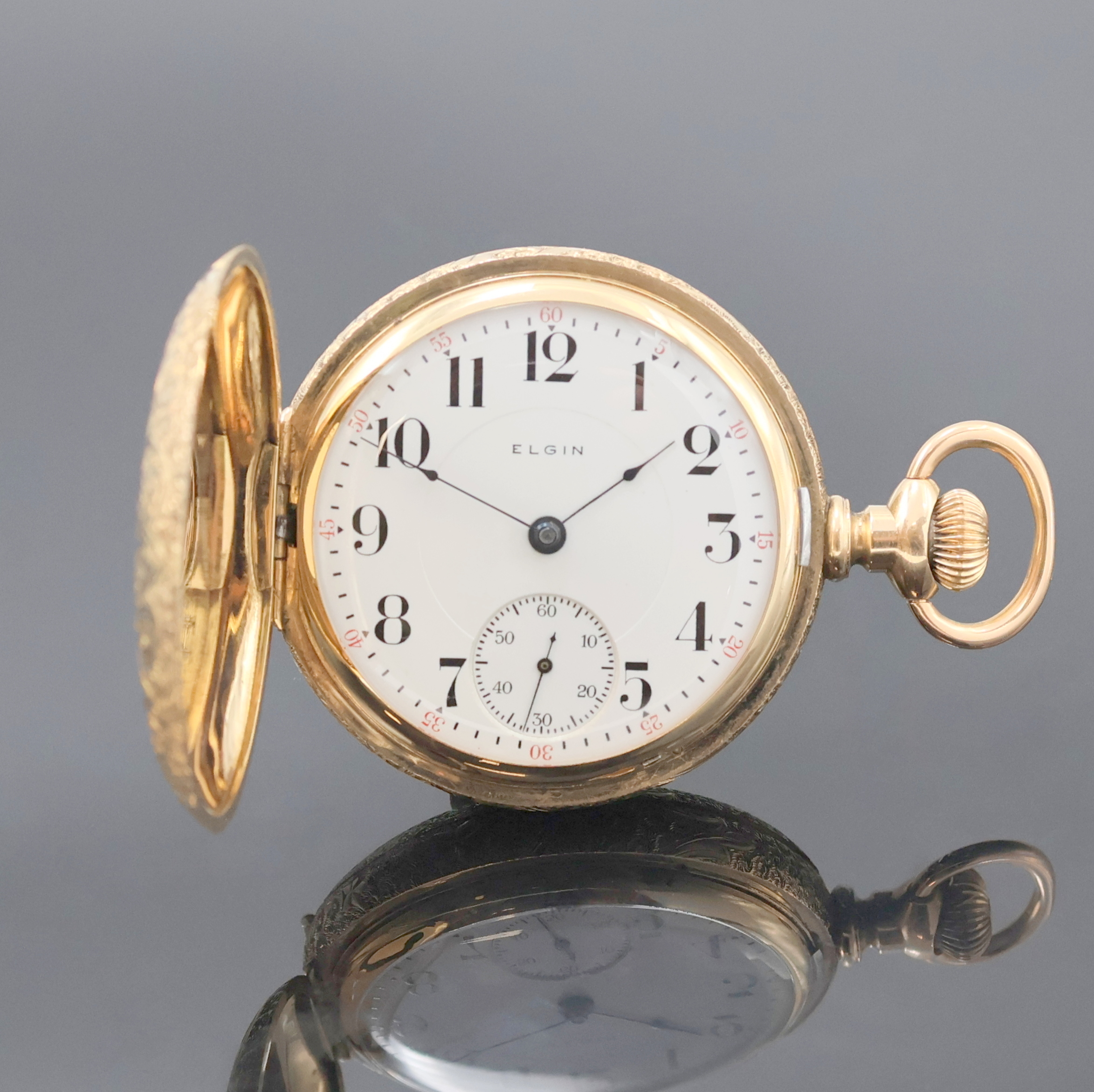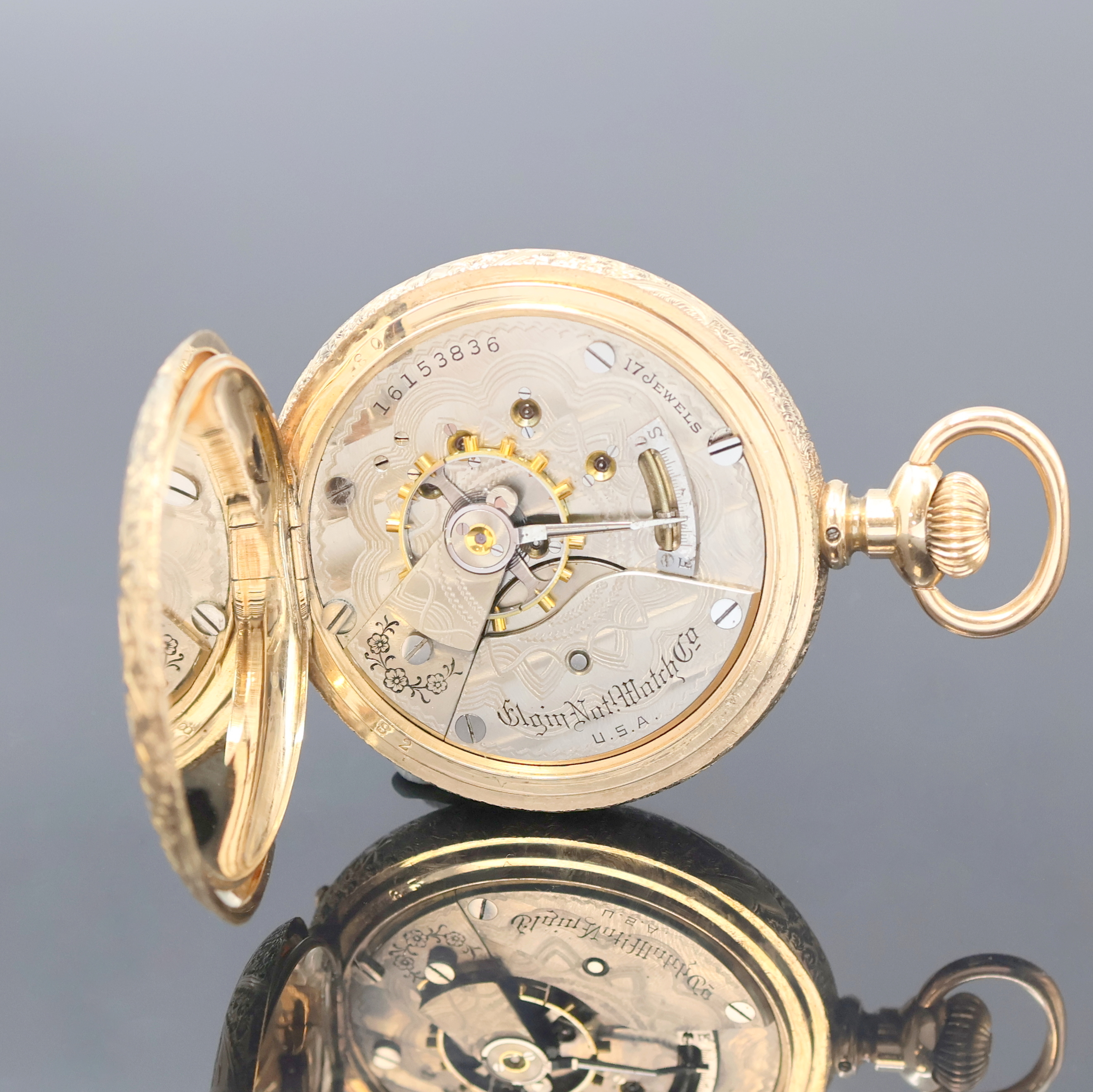 ELGIN Herrensavonette in GG 585/000, USA um 1900, grav. 3-Deckel Goldgeh., guill.