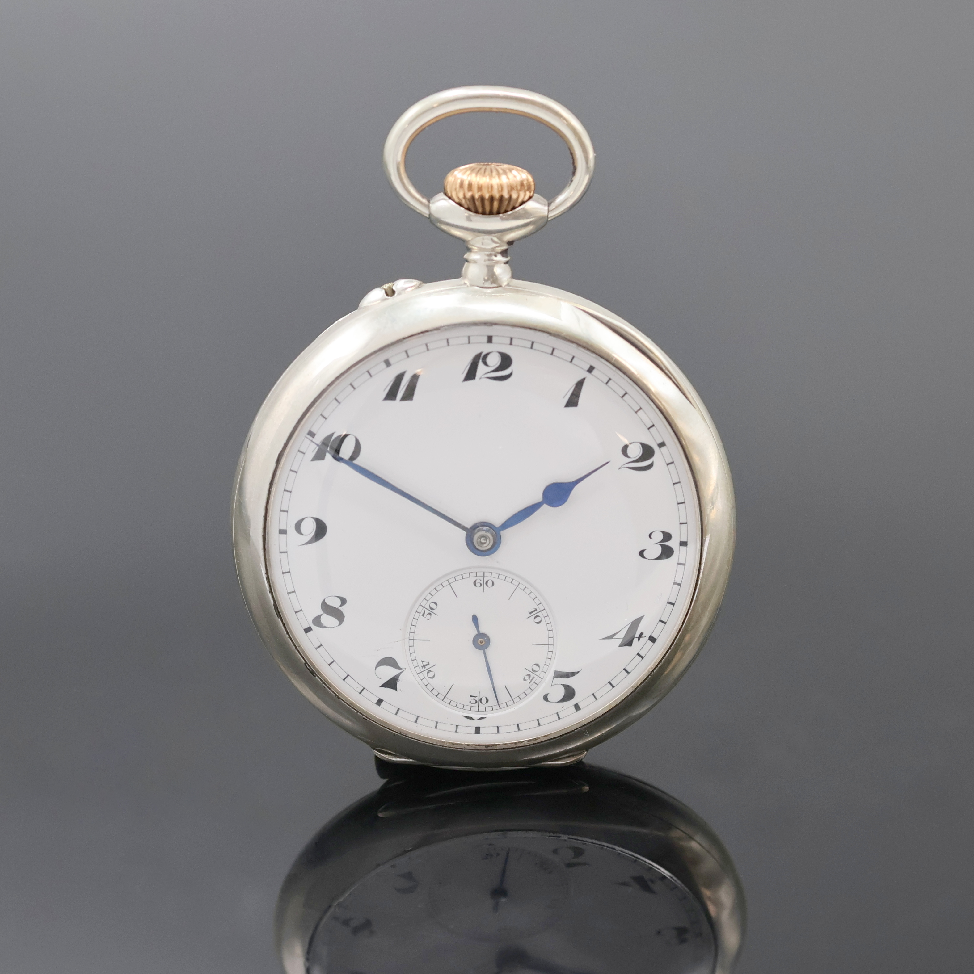 UHRMACHERSCHULE Le Locle offene Silbertaschenuhr, Schweiz um 1920, Geh. dell., Emailzifferbl.