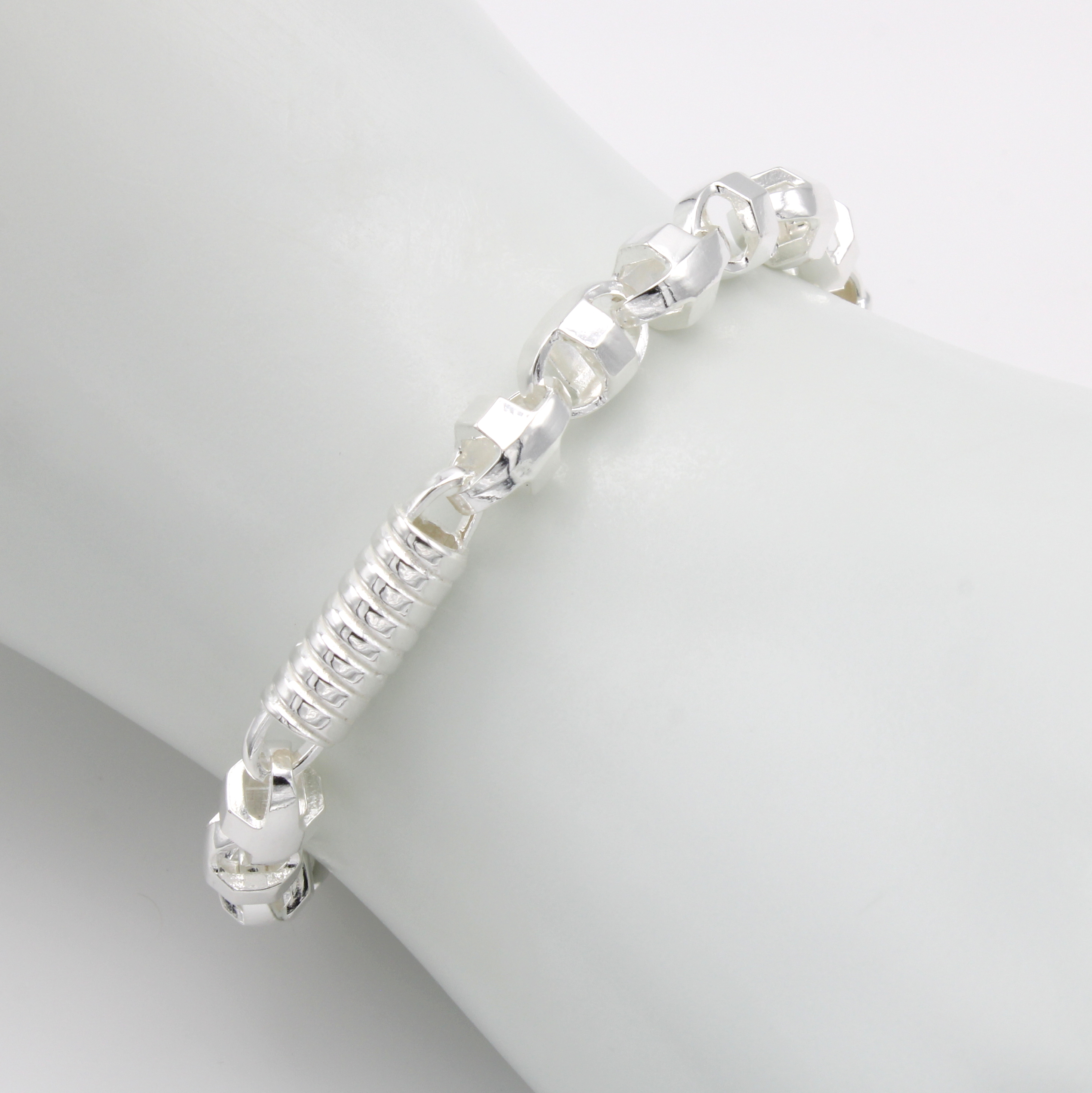 Gliederarmband, 925er Silber, Fantasiemuster, Karabinerschl., L. ca. 21.5 cm