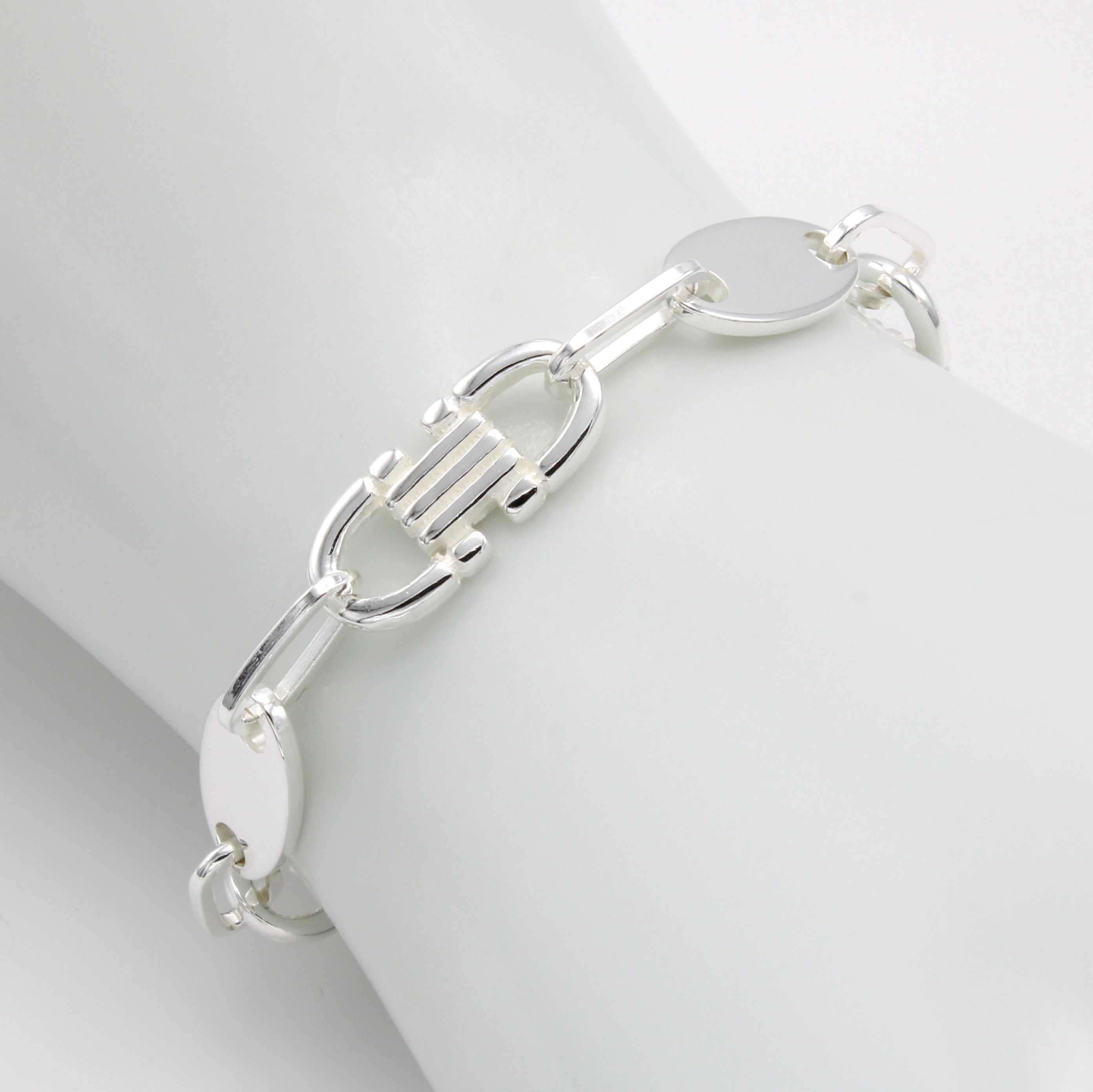 Gliederarmband, 925er Silber, flache Gliederim Fantasiemuster, Karabinerschl., L. ca. 21.5cm