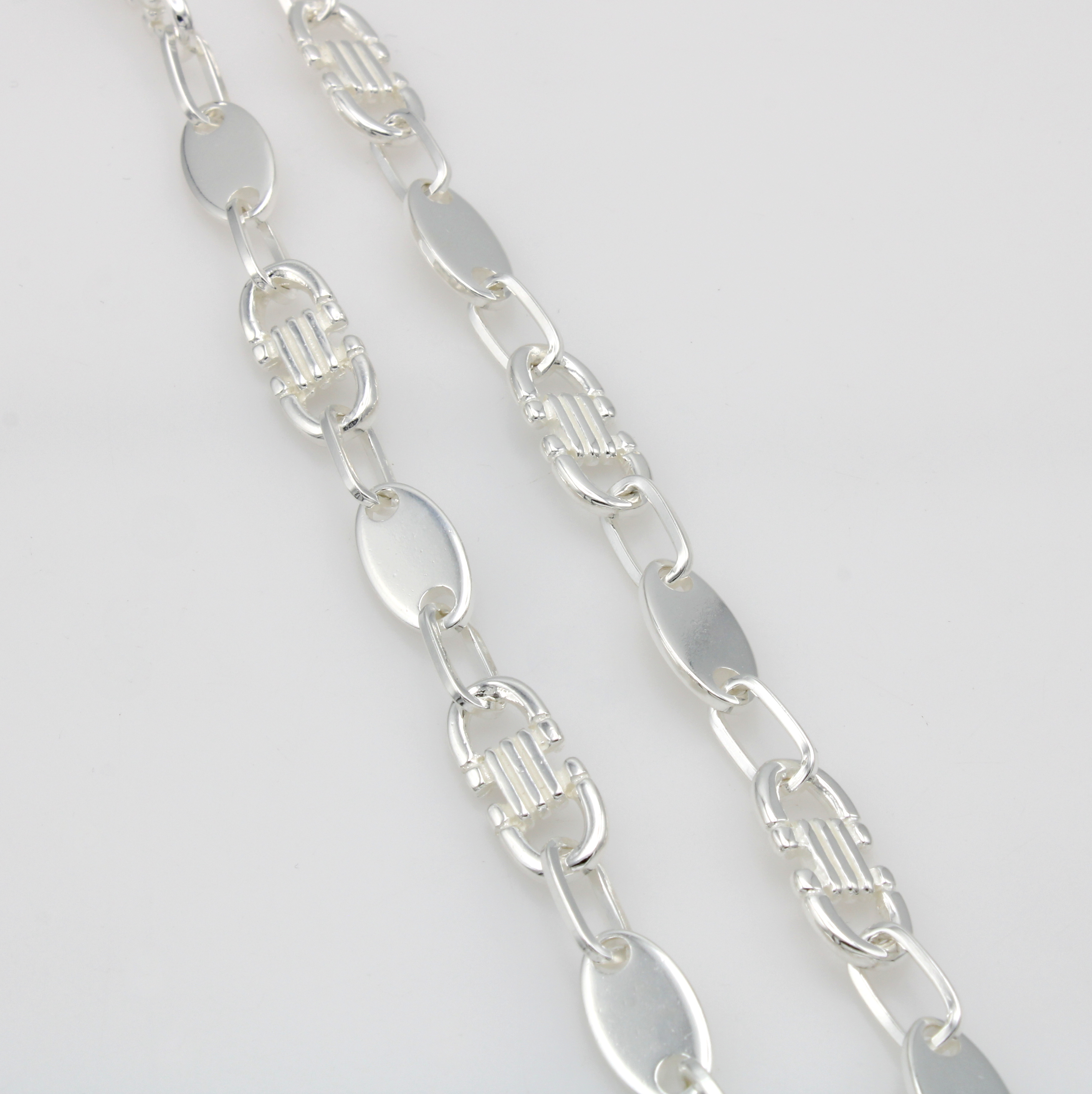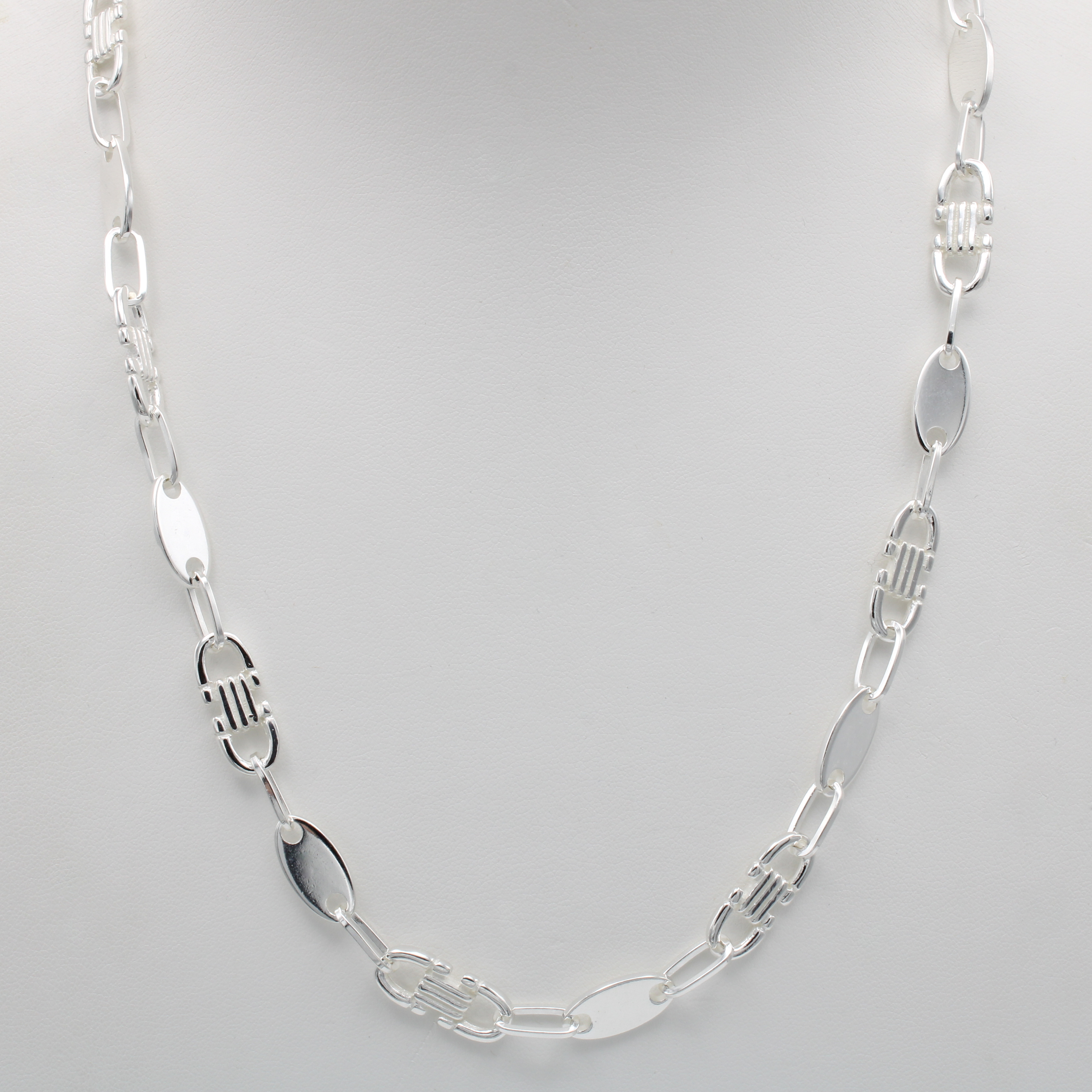 Gliedercollier, 925er Silber, flache Gliederim Fantasiemuster, Karabinerschl., L. ca. 56 cm
