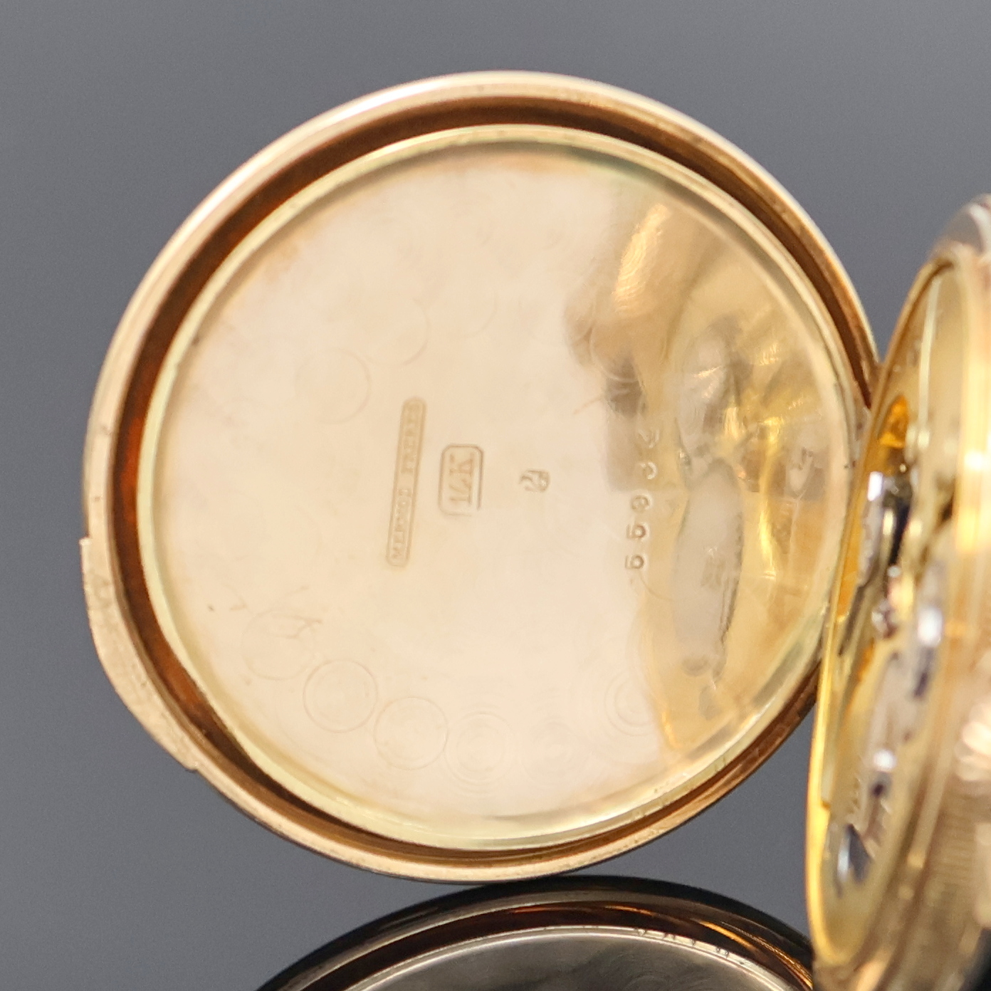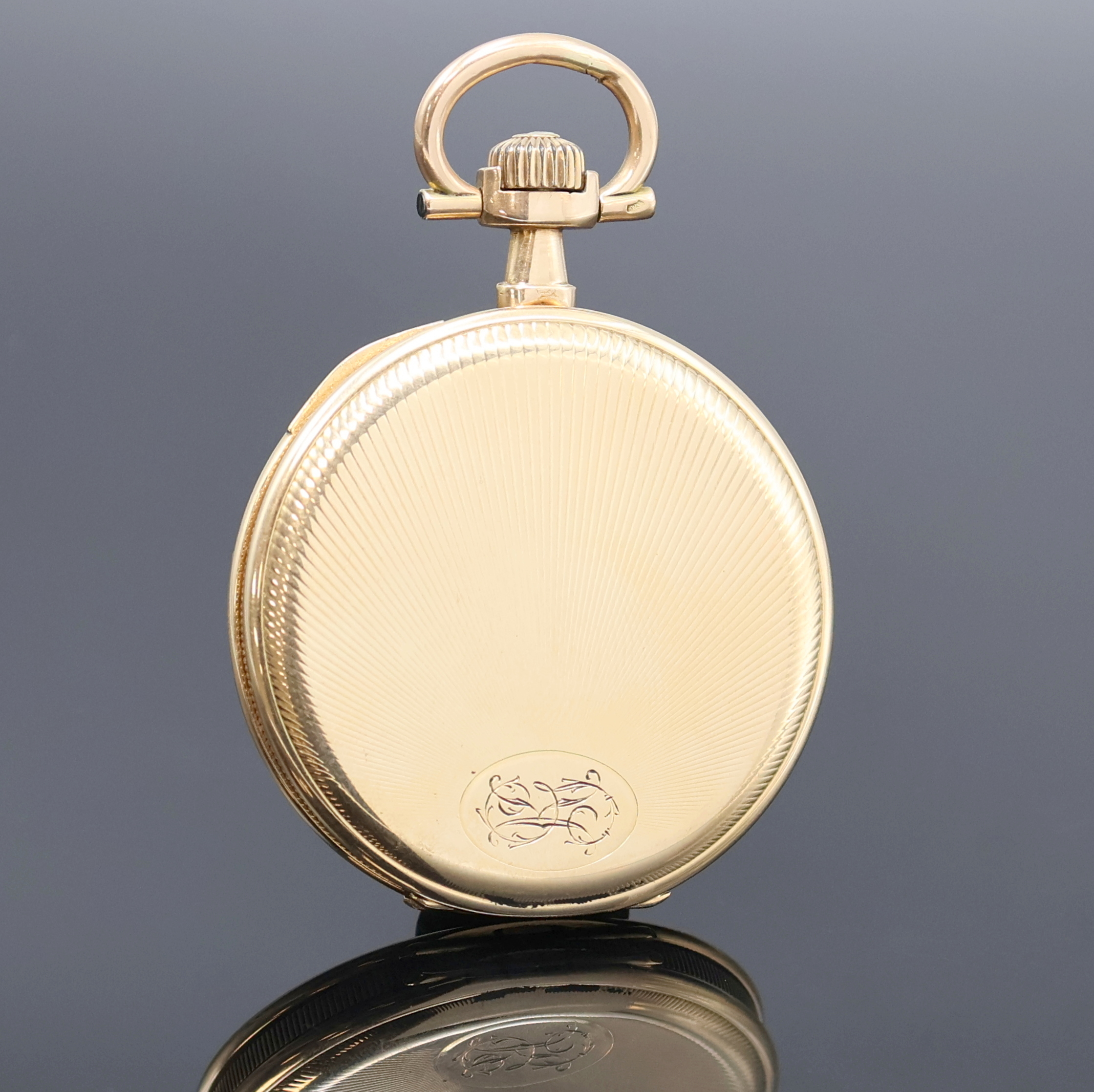 geriffelter Rand, Sprung- u. Rückdeckel (m. Monogramm) m. Strahlendekor, z. T. guill.