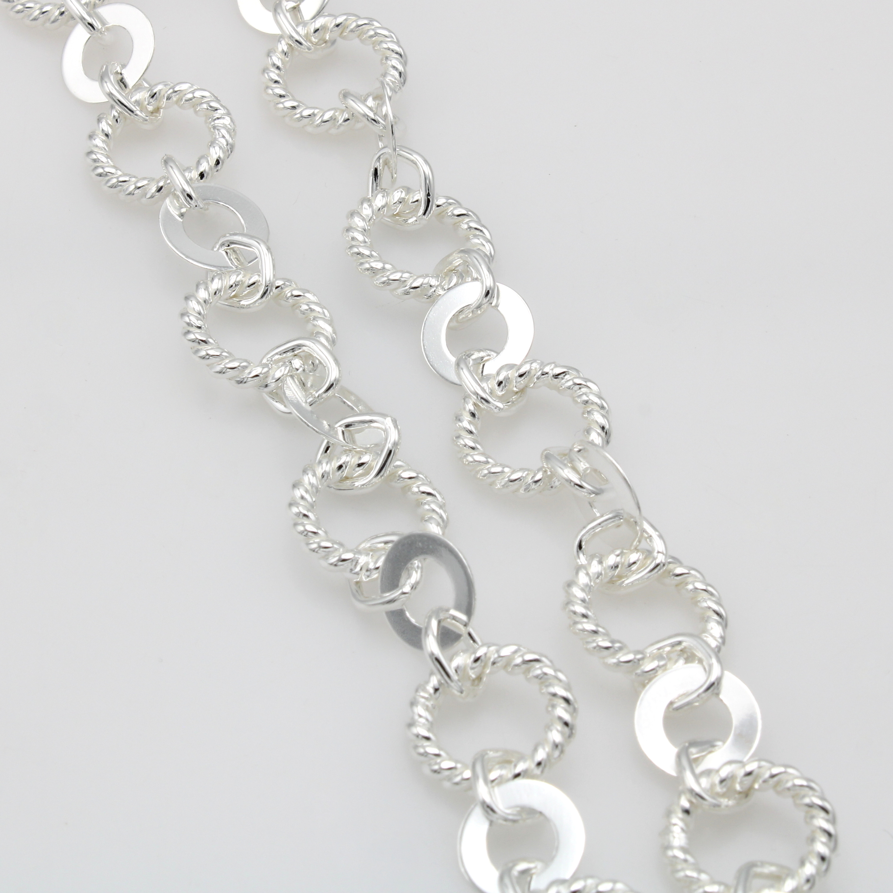 Gliedercollier, 925er Silber, runde Glieder z.T. im Kordelmuster, Karabinerschl., L. ca. 45 cm