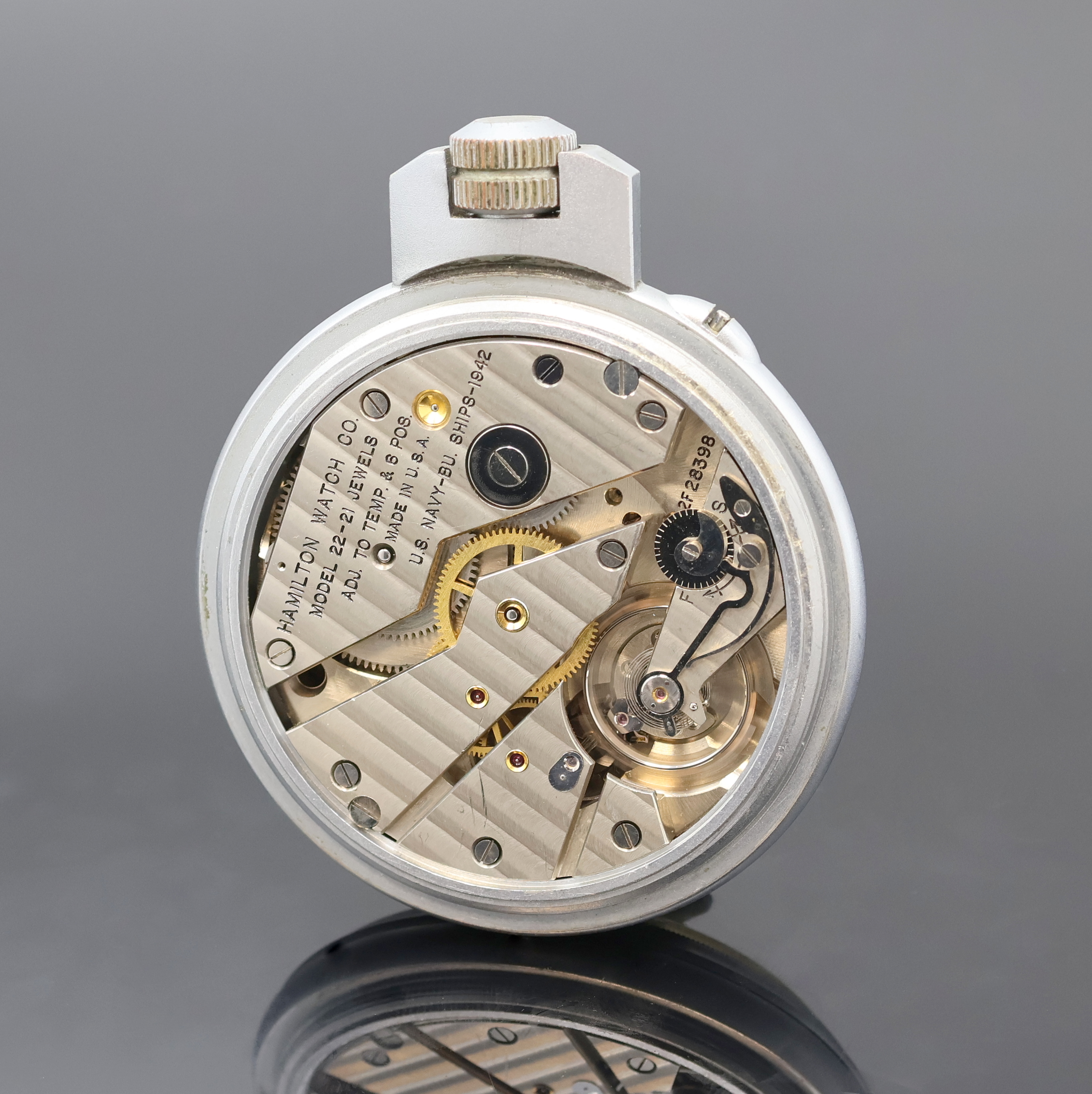 bei 12, kl. Sek. bei 6, silb. Werk mit Genfer Streifen sign. "U.S. NAVY-BU. SHIPS-1942",