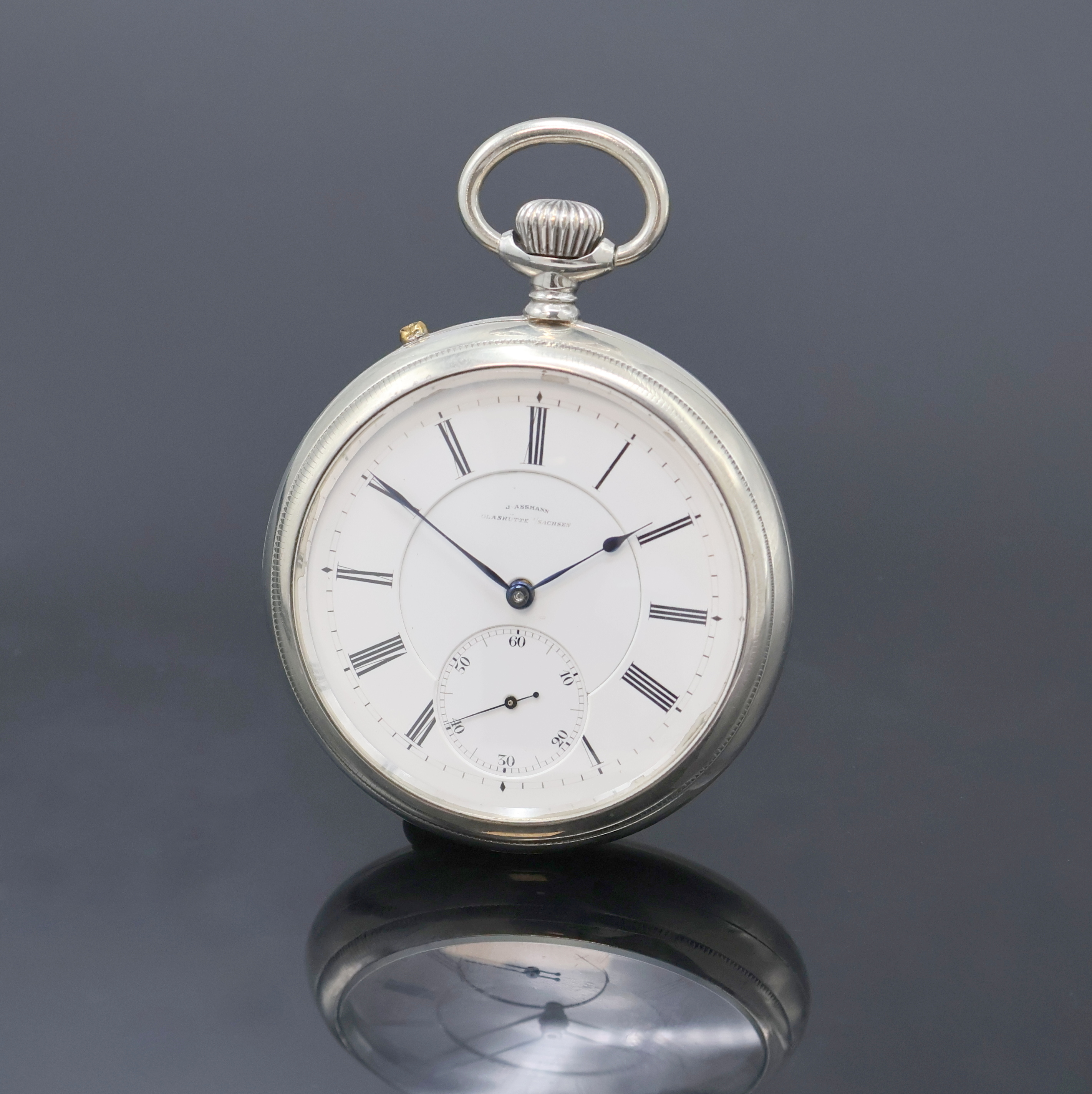 J. ASSMANN Glashütte Taschenuhrwerk im neutralen Silbergehäuse, Deutschland um