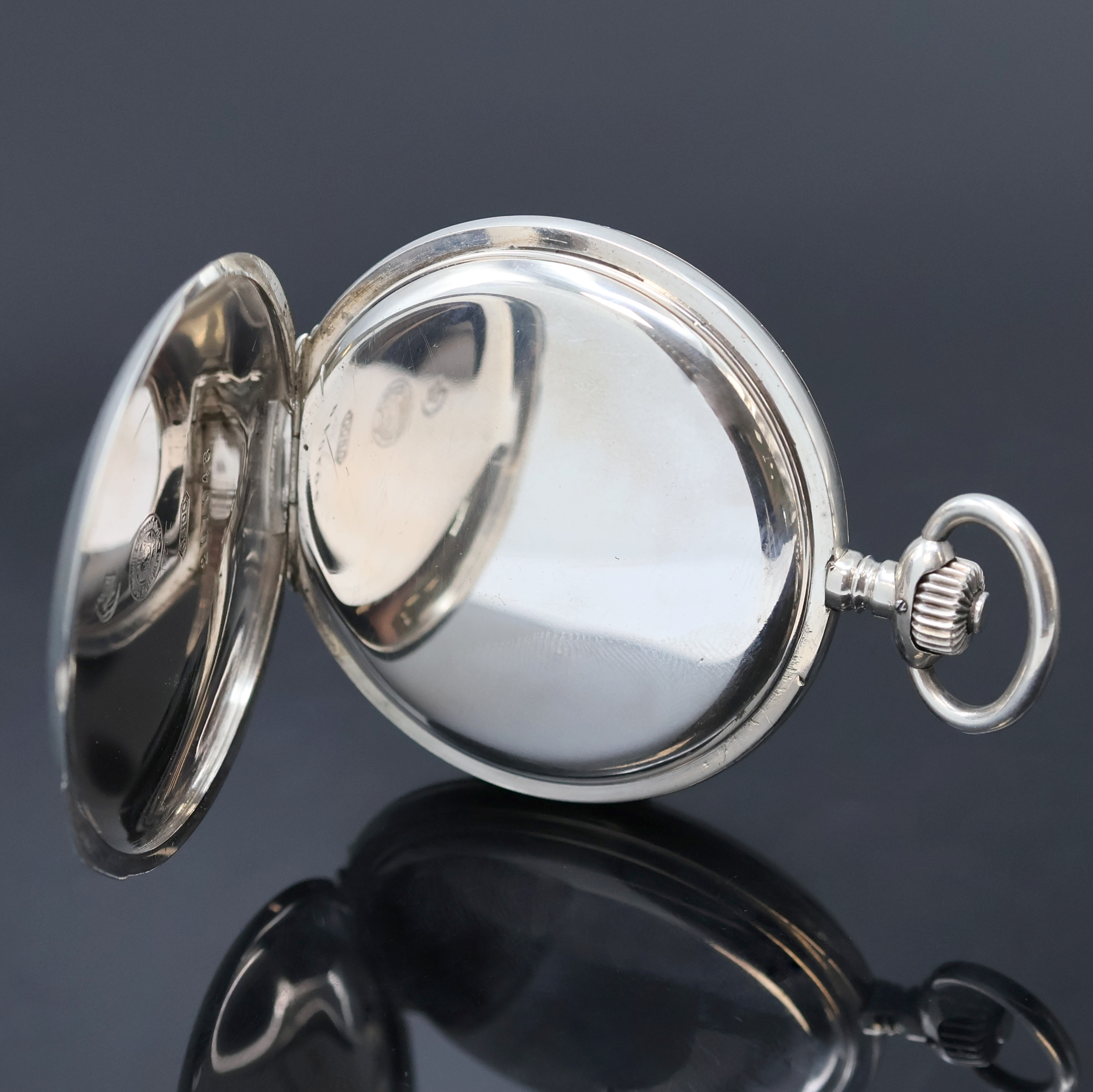 um 1920, Geh. dell., guill. Sprung- u. Rückdeckel, Emailzifferbl. m. arab. Zahlen,