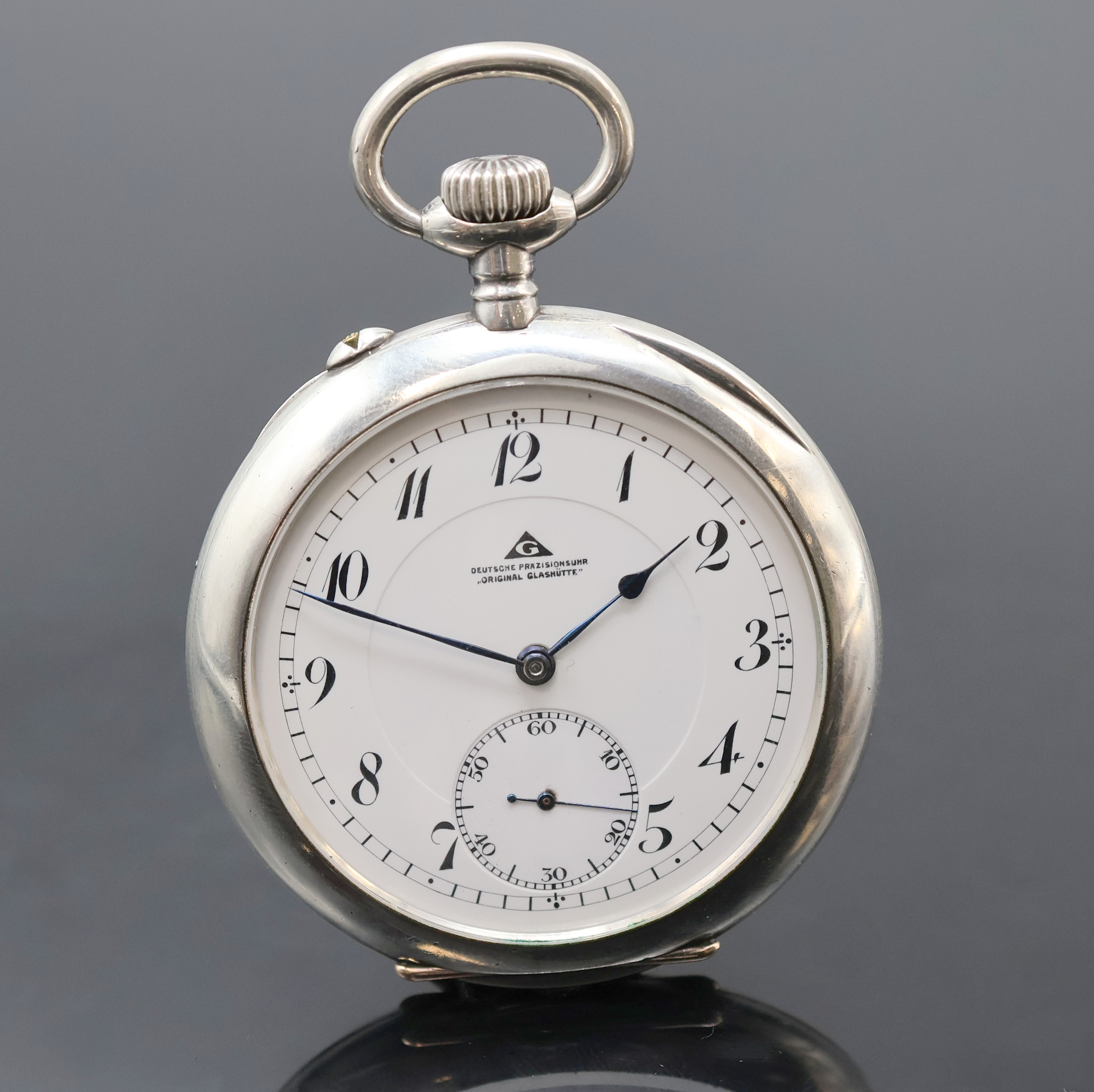 DEUTSCHE PRÄZISIONSUHR ORIGINAL GLASHÜTTE offene Taschenuhr in Silber, Deutschland