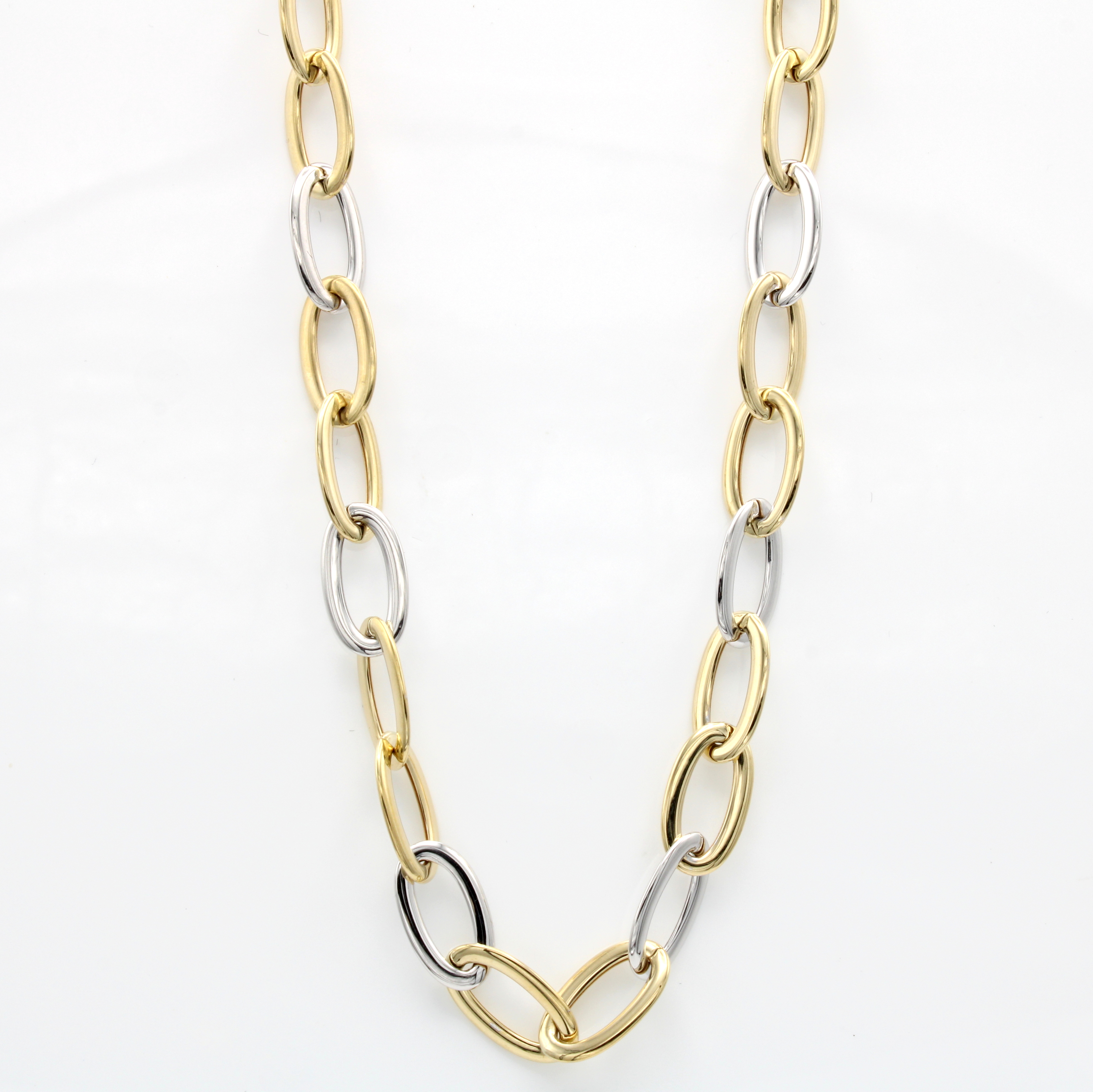 Collier mit ovalen Ringelgliedern, GG/WG 585/000, Karabinerschl., B. ca. 8 mm, L. ca. 45 cm
