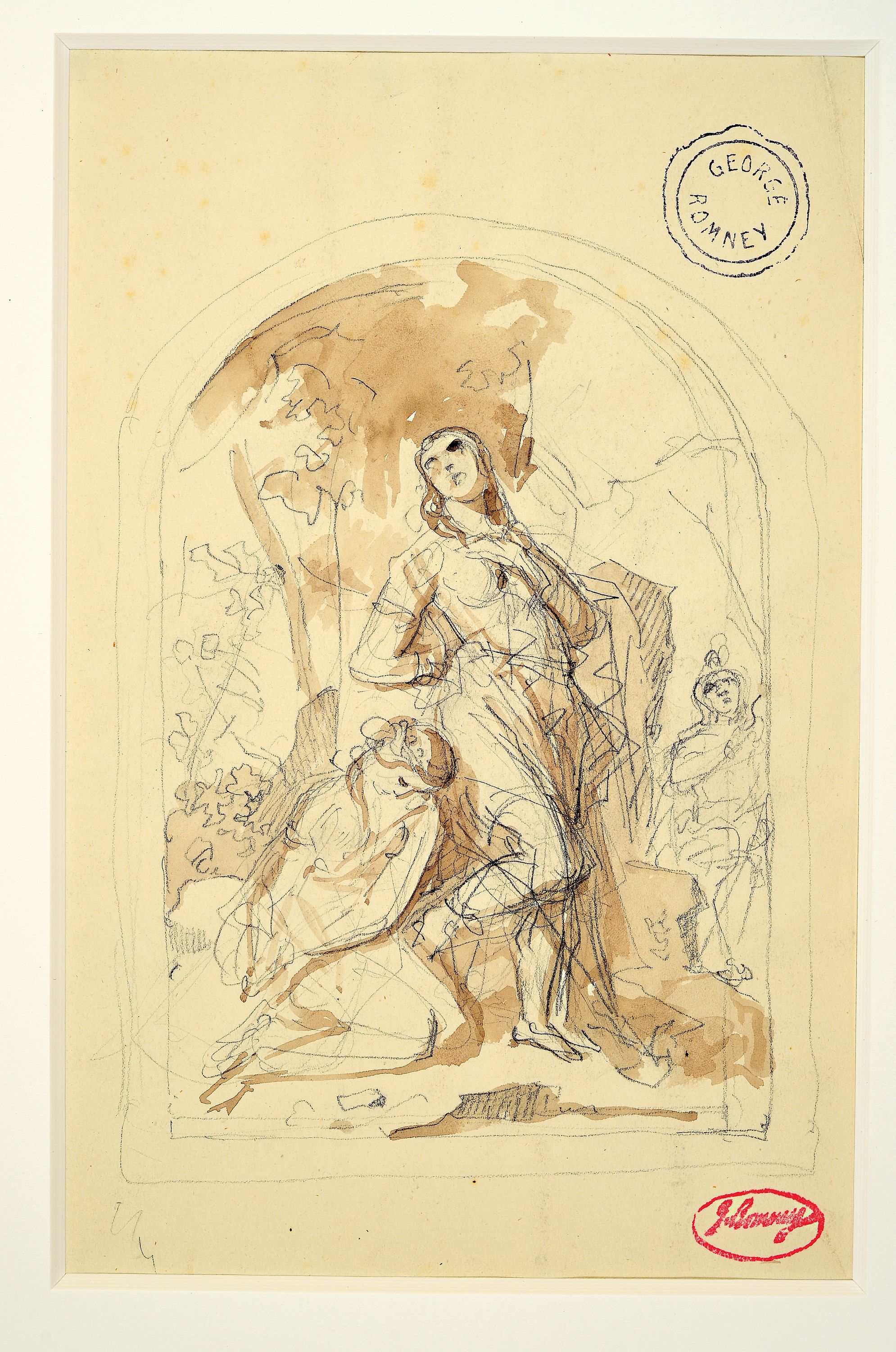 George Romney, 1734-1802, Figuren, Bleistift und Aquarell auf Papier, rechts unten