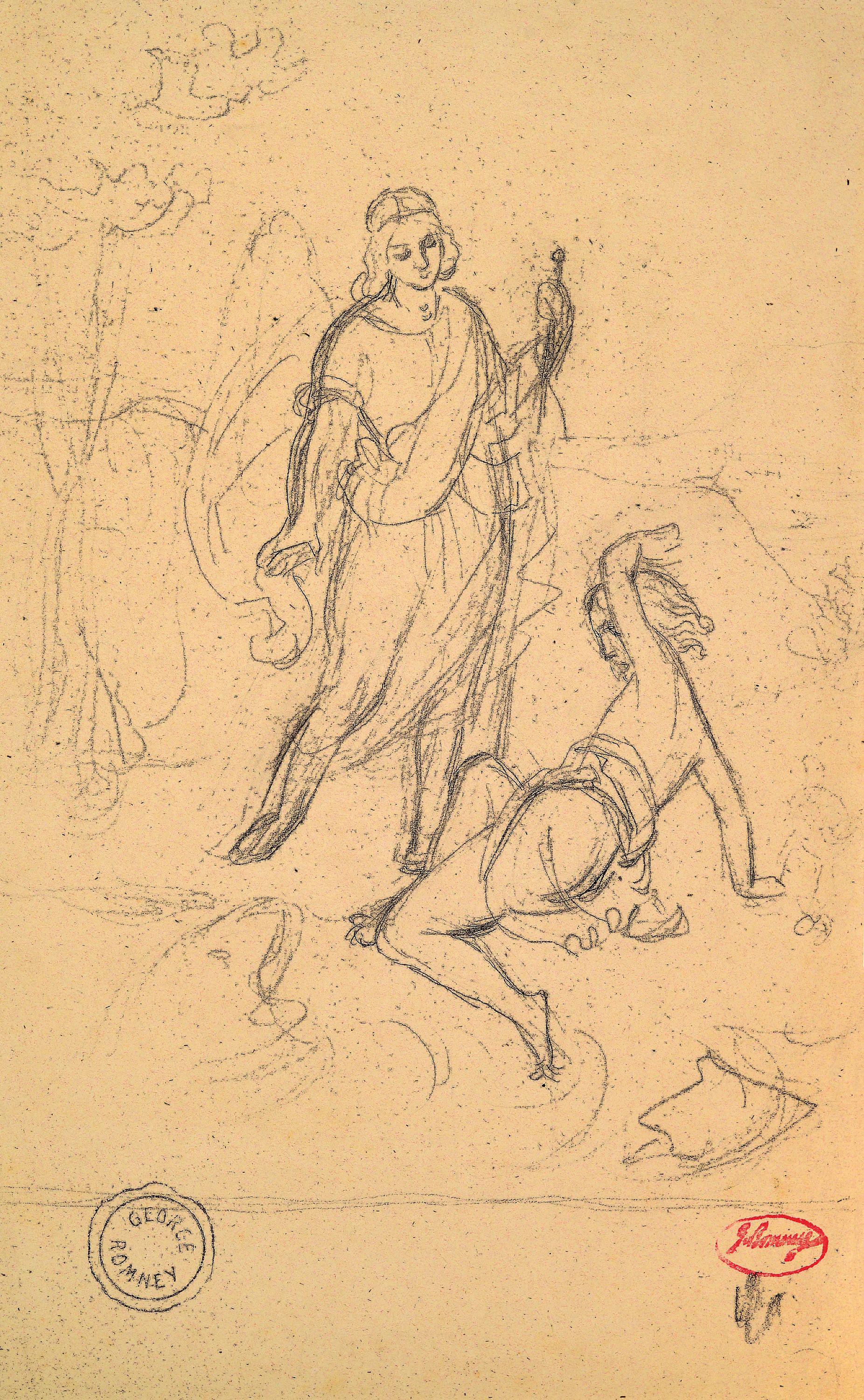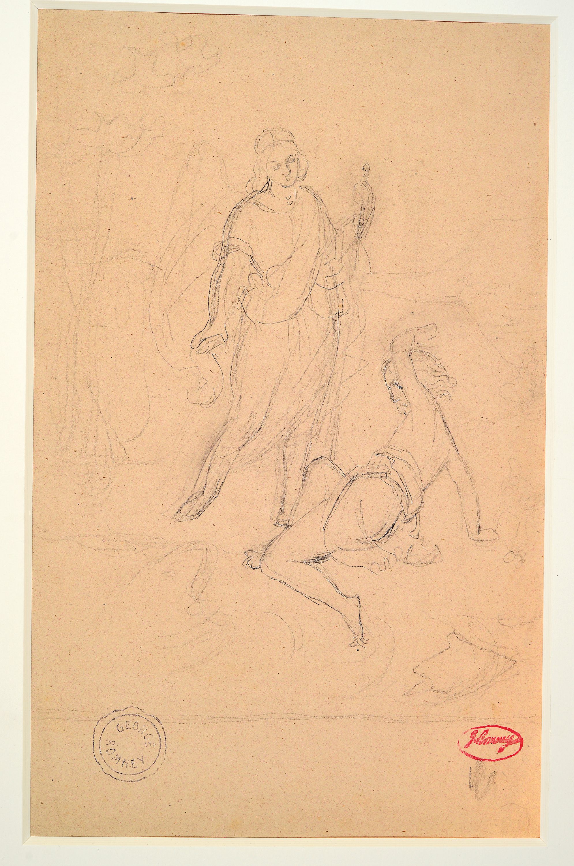 George Romney, 1734-1802, Studienblatt mit 2 Personen, Bleistift auf Papier, rechts unten Stempel der Sammlung Xavier Haas (Lugt 4541), unten links der runde Romney-Stempel (Lugt 4542), ca. 34.2x21.5cm, PP