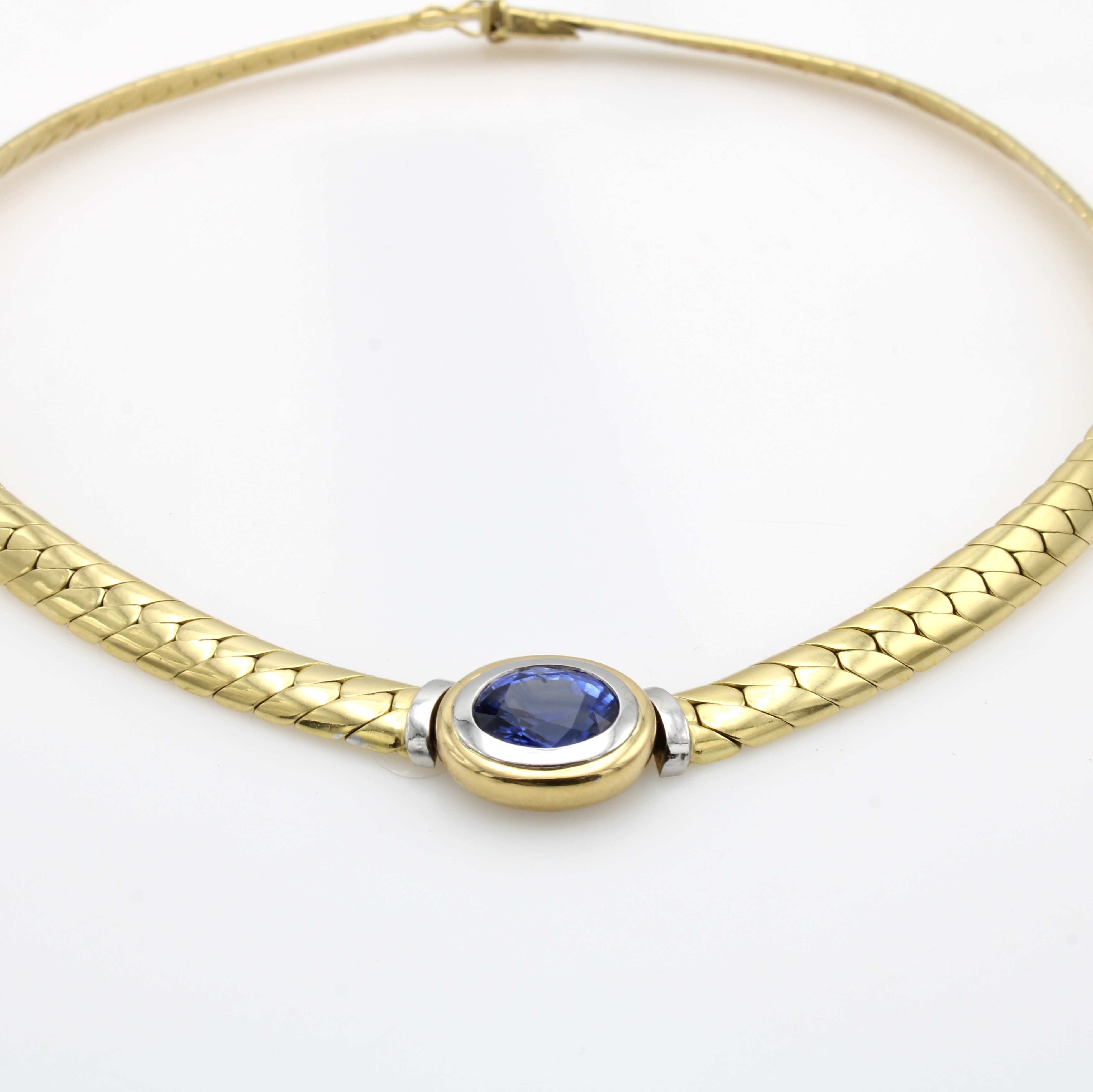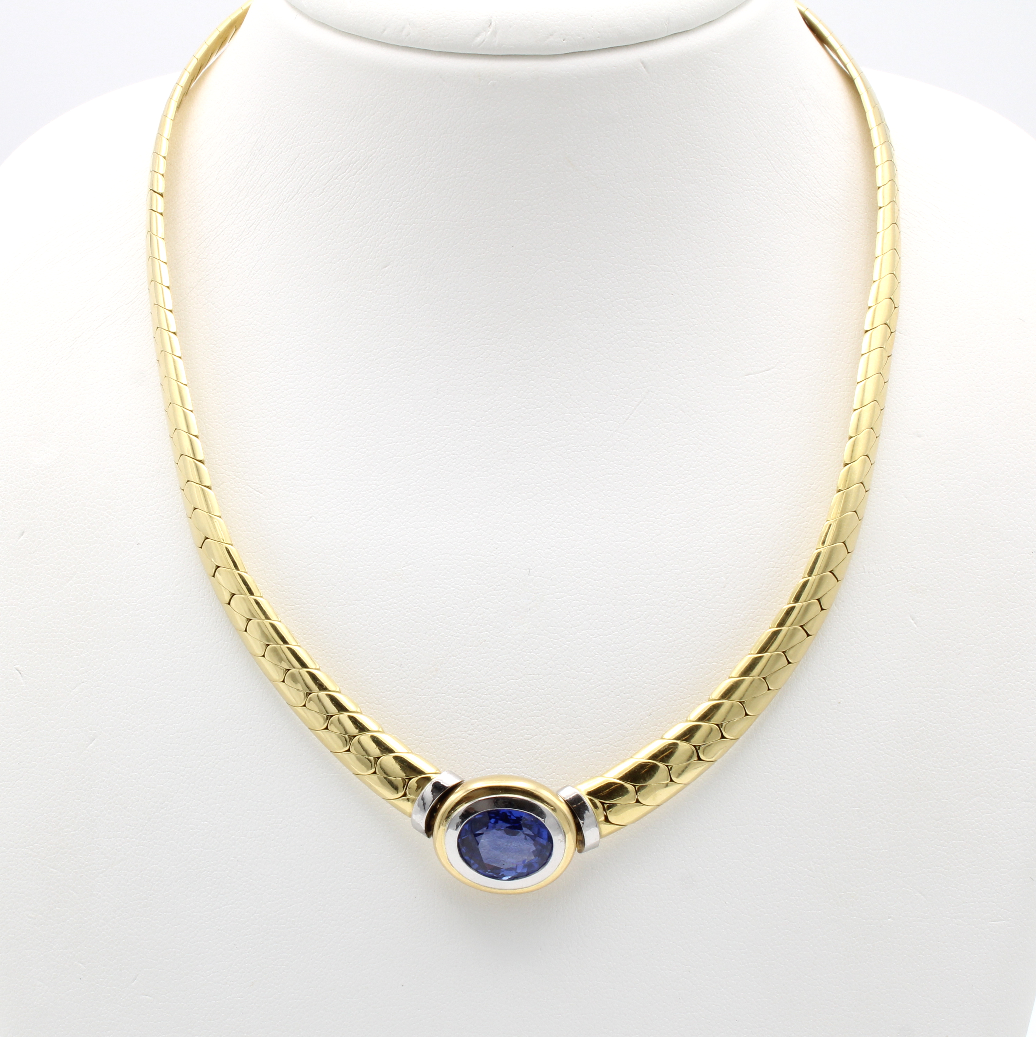 Collier mit Saphir, GG/WG 750/000, Saphir von sehr schöner Farbe 8.62 ct oval fac.,