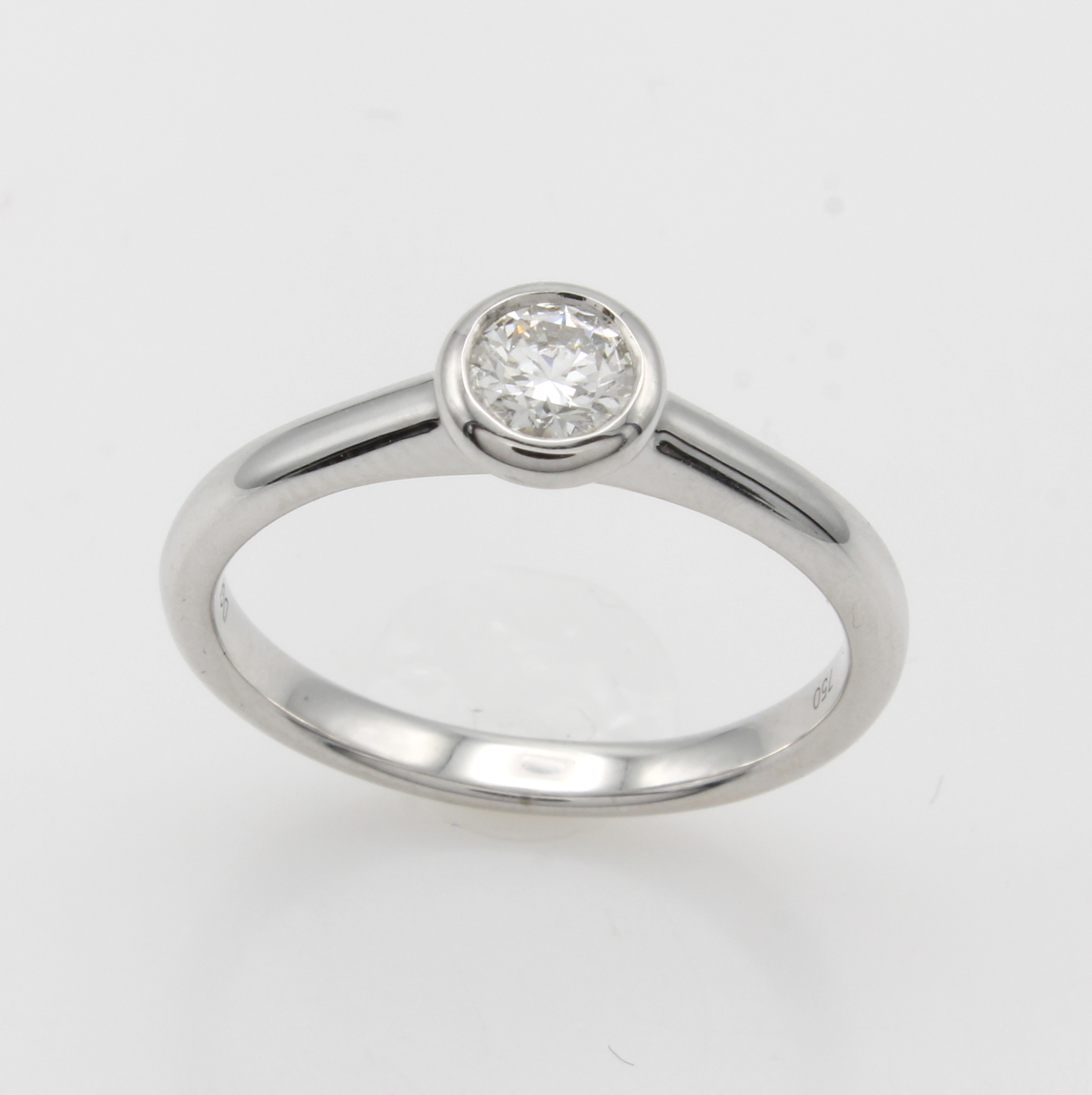 Ring mit Brillantsolitär, WG 750/000, Brill.0.30 ct feines Weiß/si, mit GIA-Expertise, in Zargenfassung, RW ca. 54 Schätzpreis: 2000, - EUR