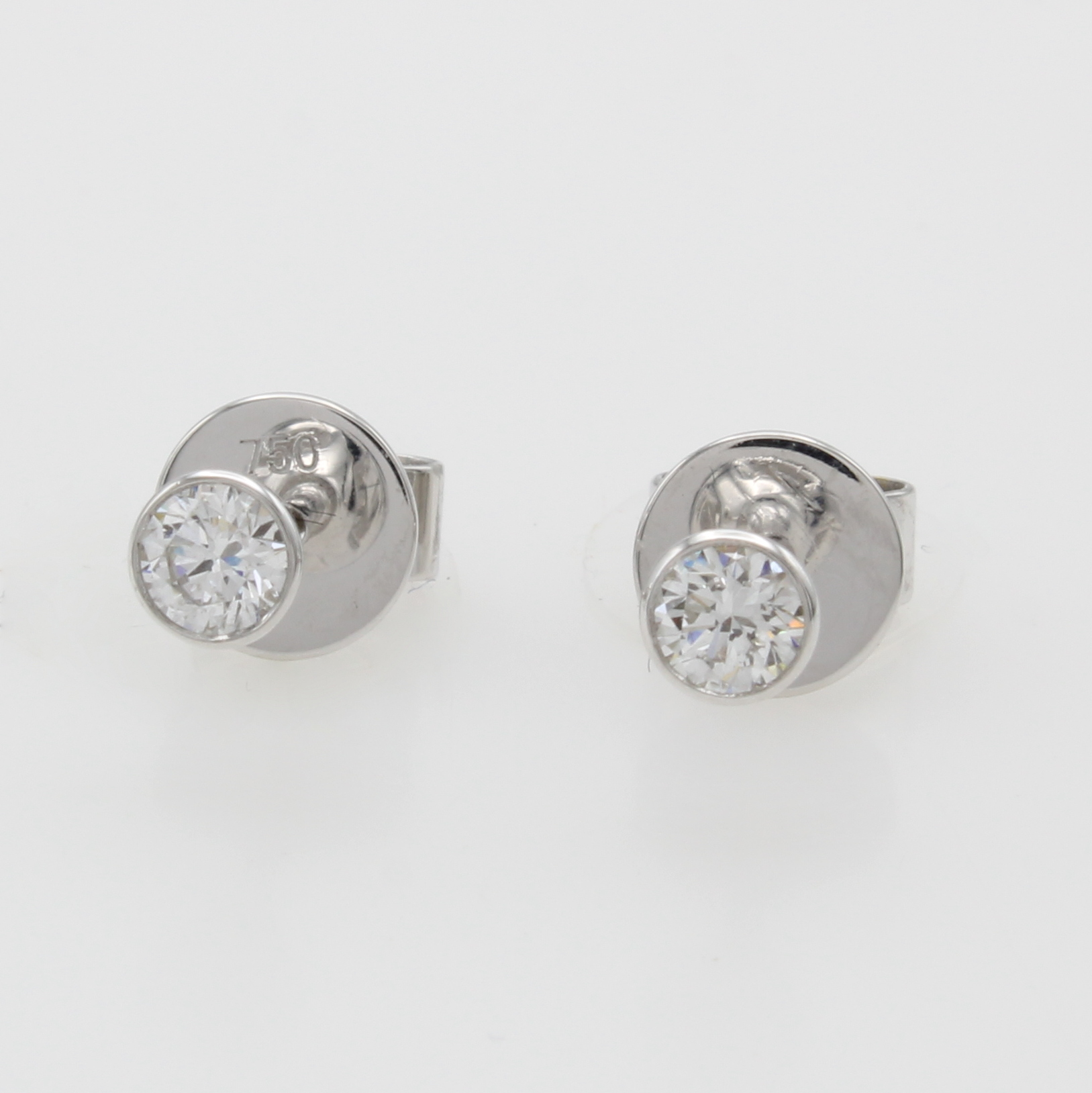 Paar Ohrstecker mit Brillanten, WG 750/000, 2 Brill. in Zargenfassung 0.30 ct feines Weiß/si