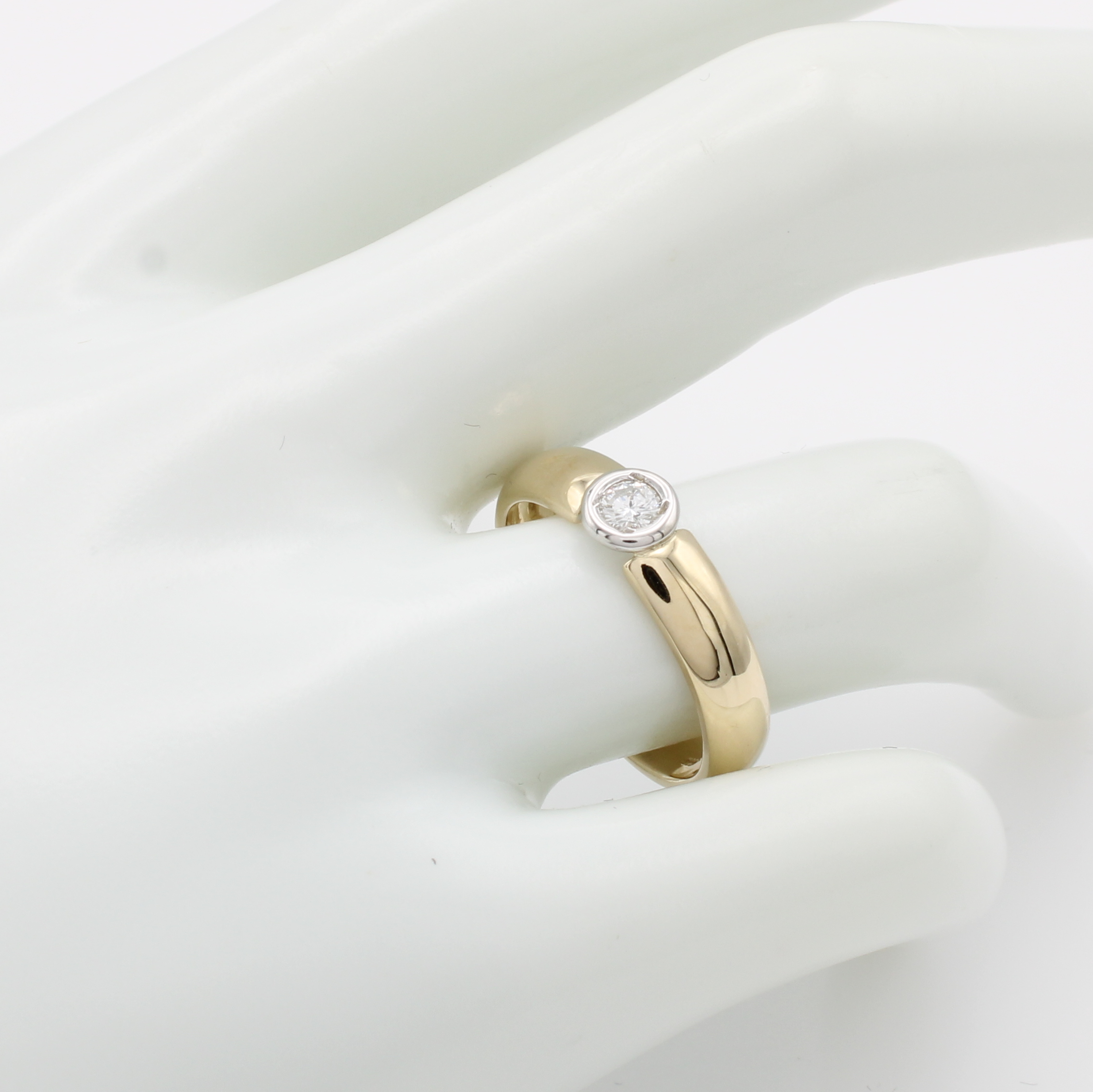 Ring mit Brillant, GG/WG 585/000, Brill. ca. 0.20 ct Weiß/si, RW ca. 58 Schätzpreis: 1000, - EUR