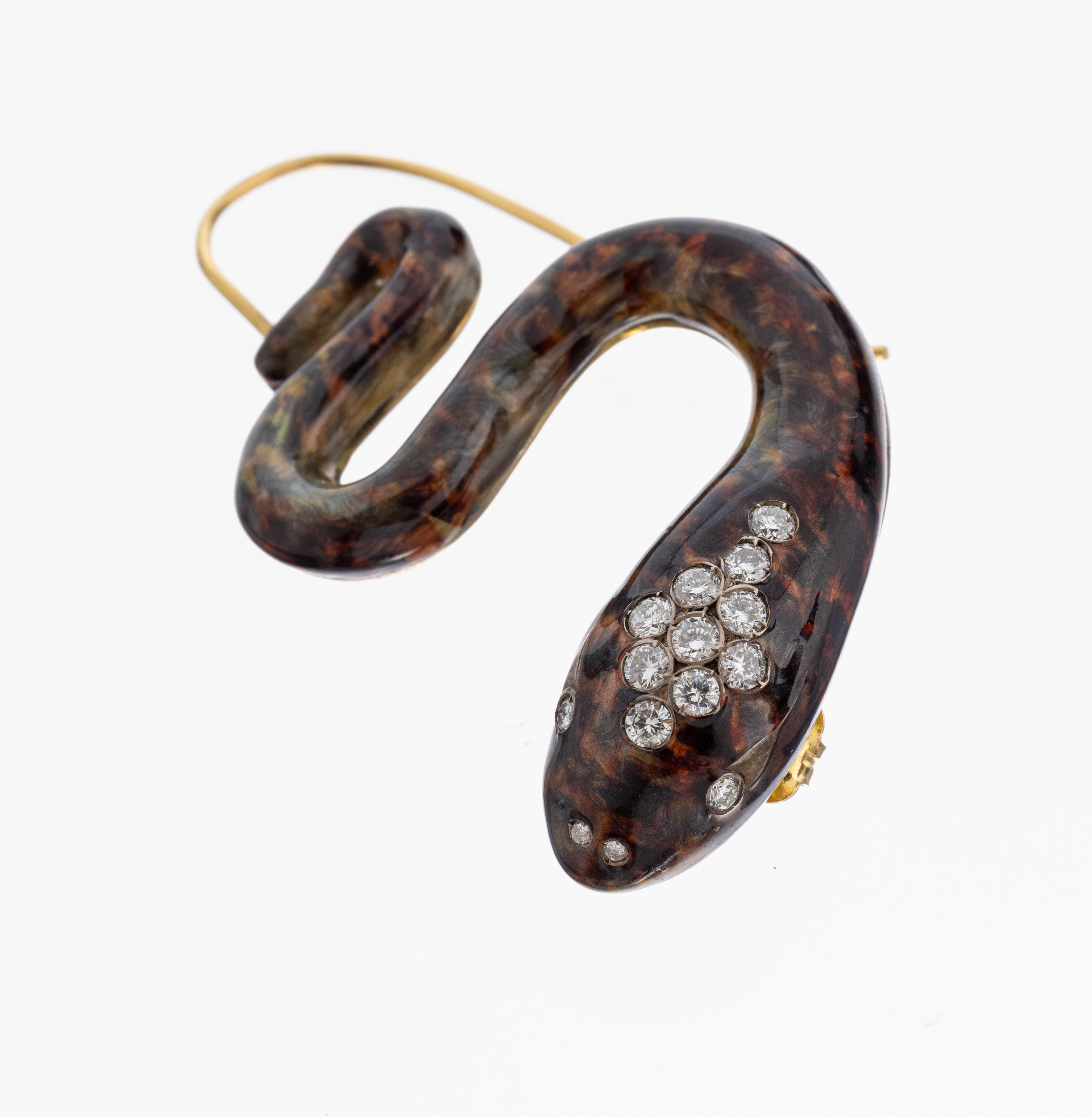 einer Schlange, Oberteil Silber fein emaill., Kopf mit 14 Brillanten zus. ca. 0.52