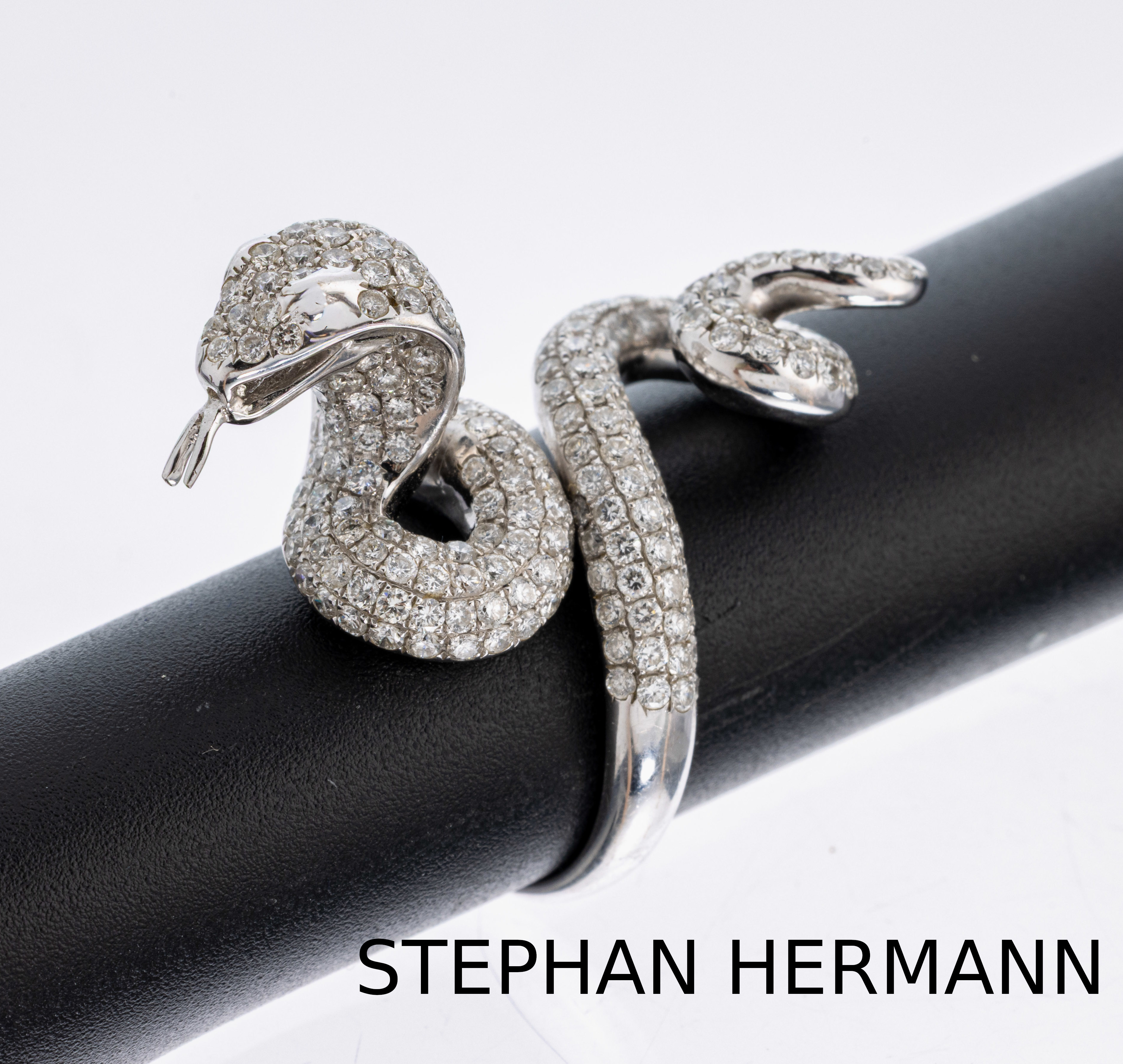 18 kt Gold STEPHAN HERMANN Brillant- Schlangenring, WG 750/000, Brillanten zus. ca.