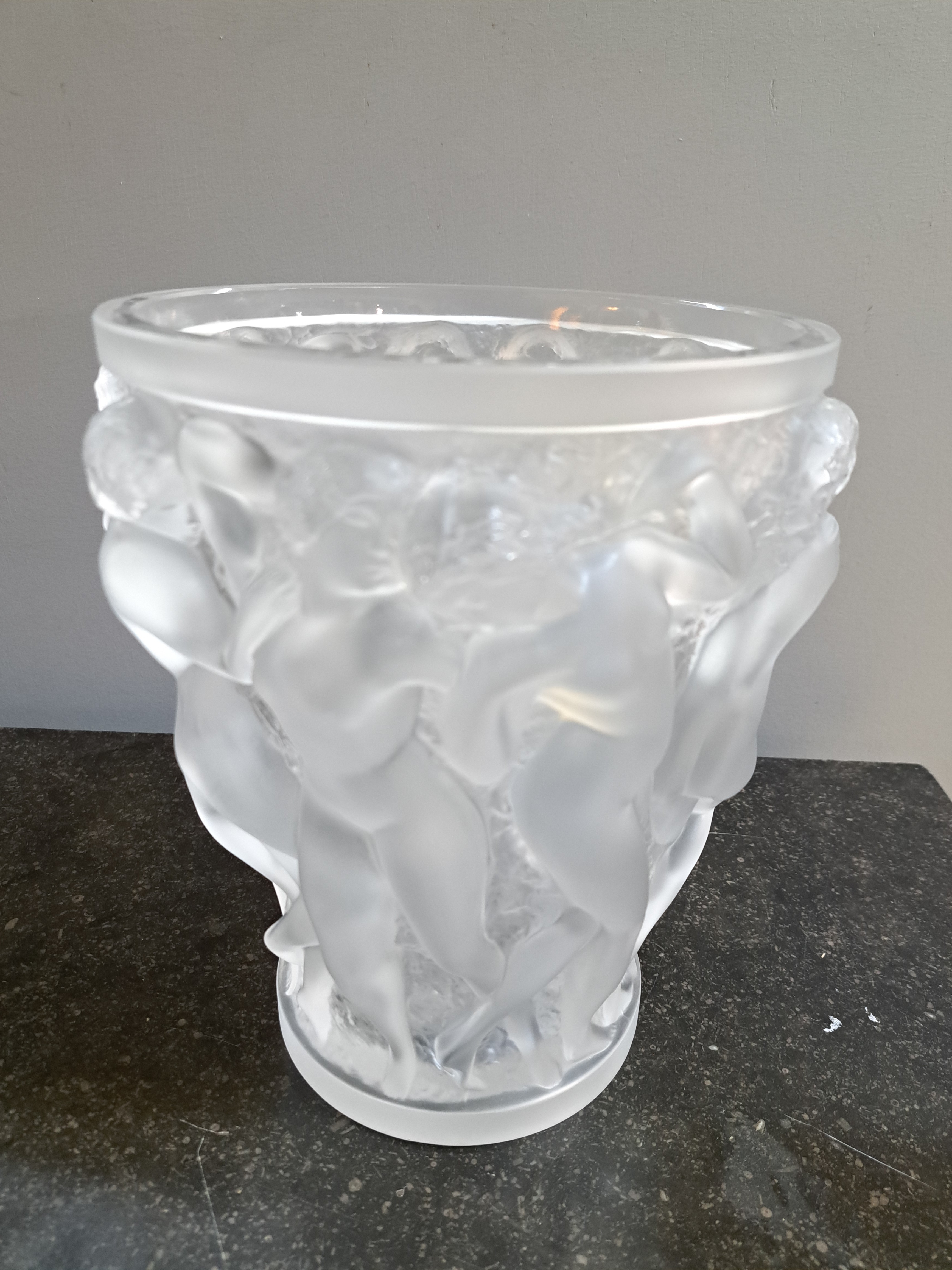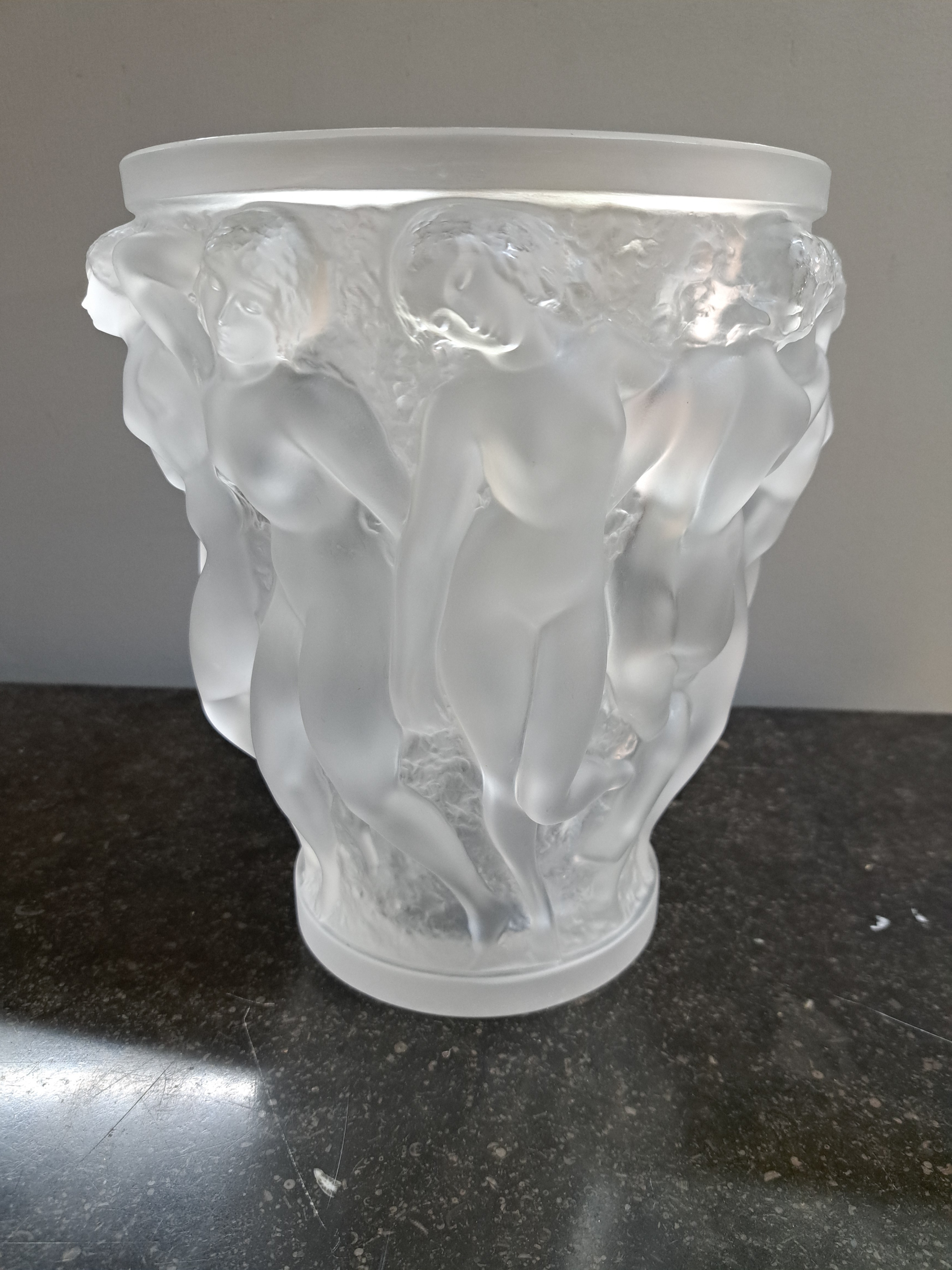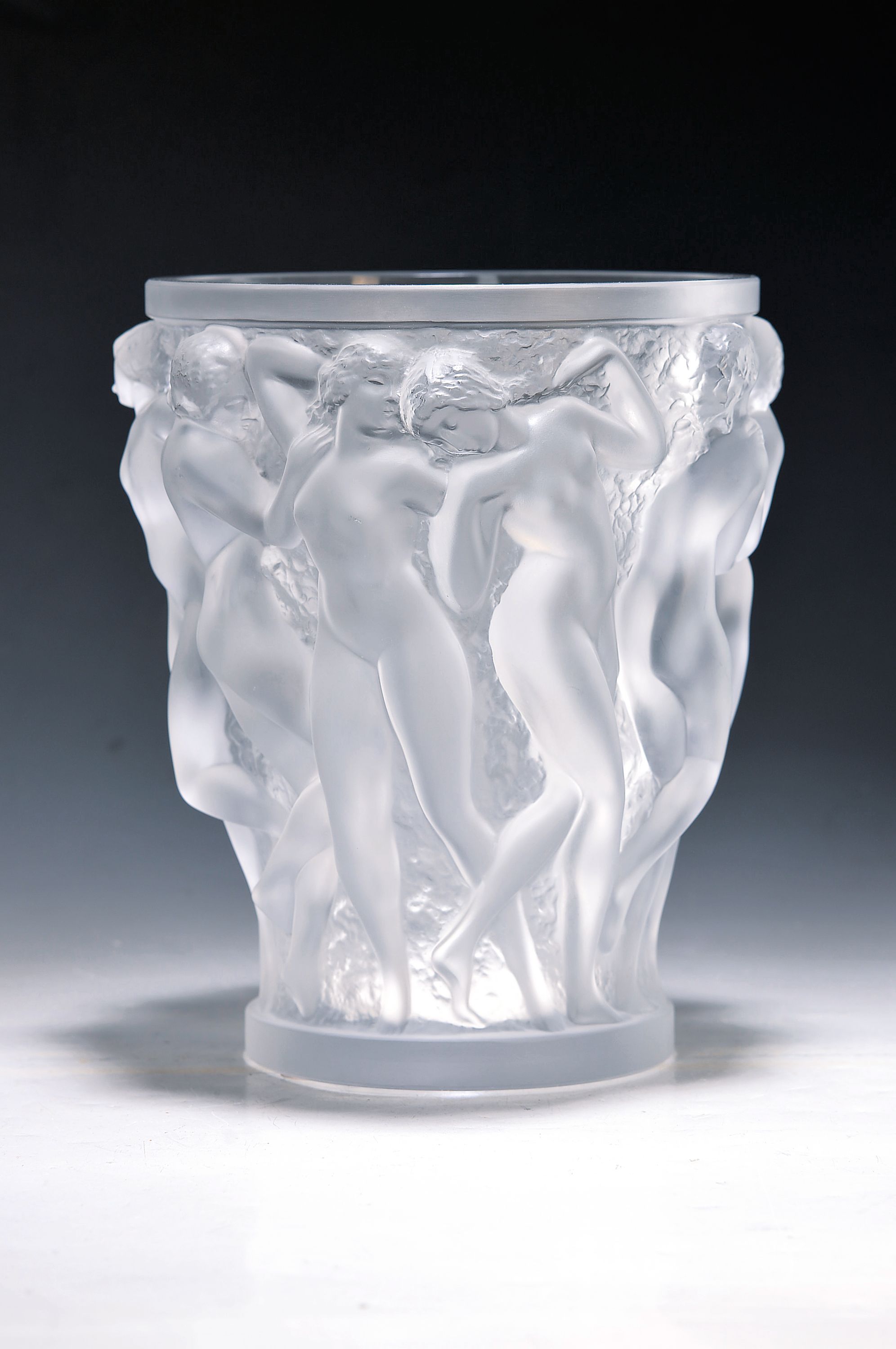Große Vase, Lalique, 20. Jh., Bacchantes, umlaufende Frauenakte, signiert, farbloses