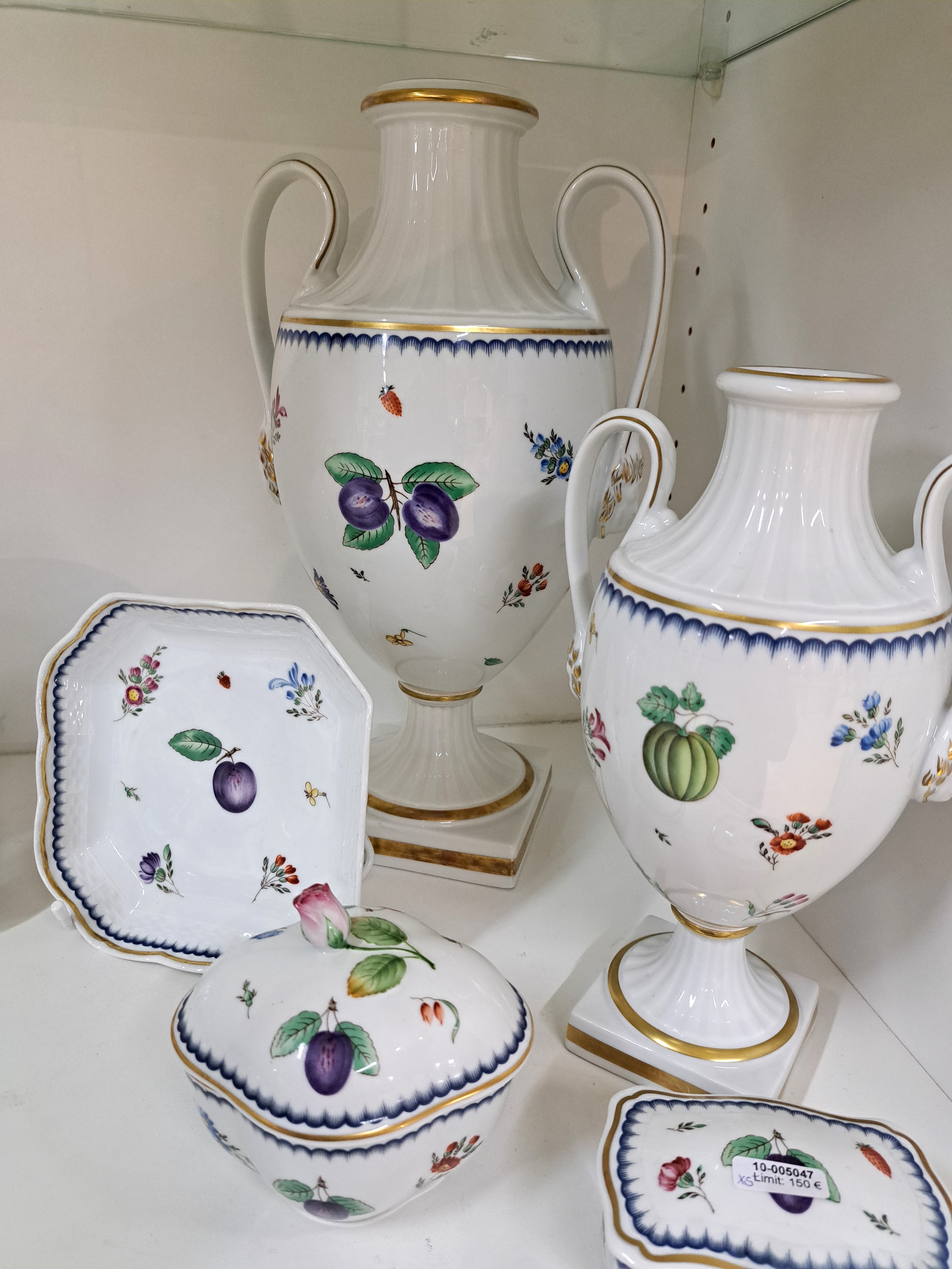 Zwei Vasen, zwei Deckeldose und eine Schale, Ginori, Doccia Florence, Italien, 2.