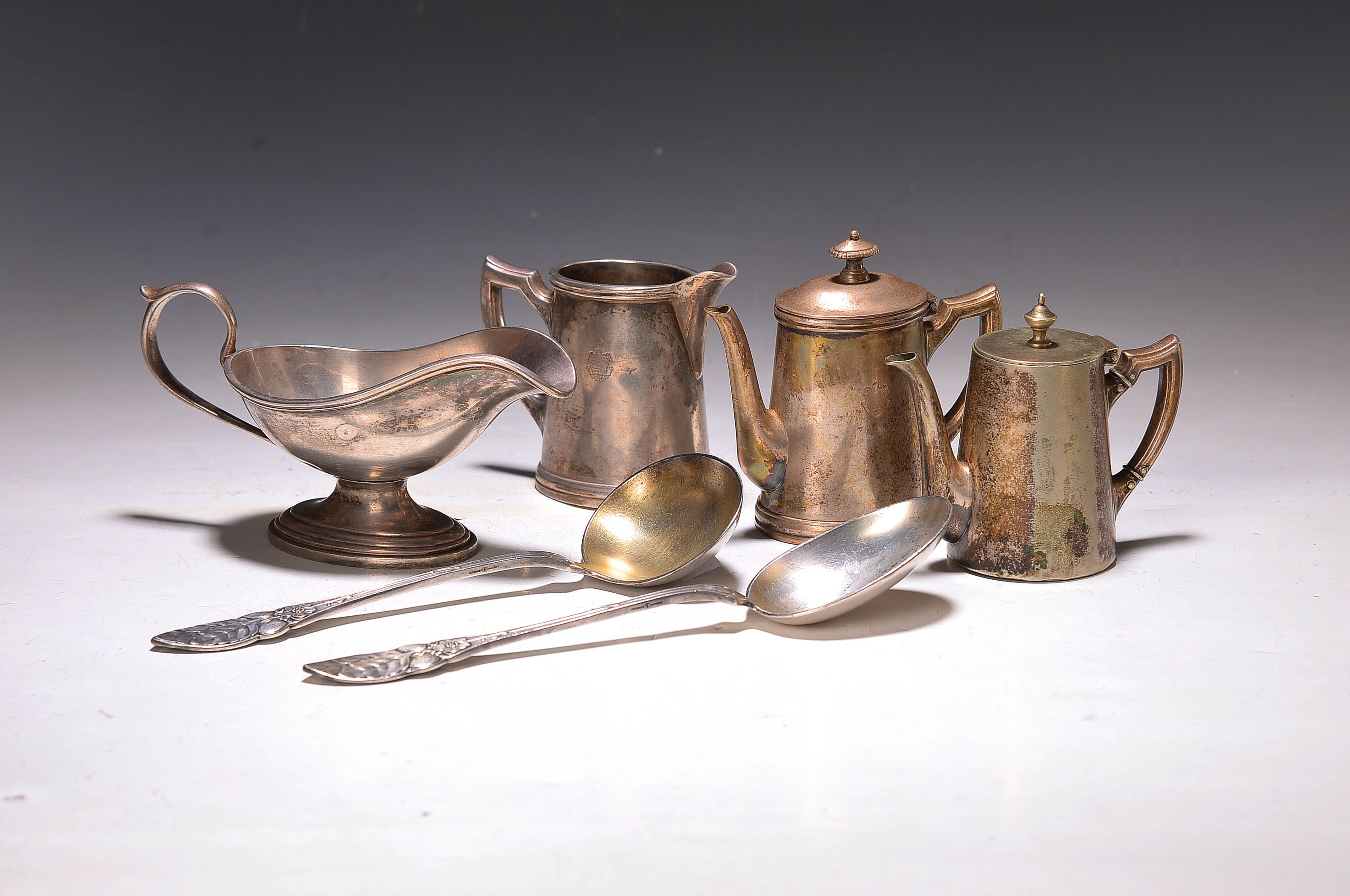 3 untersch. Kännchen, Soßenkelle und Vorlegelöffel, Bodenmarken Krupp, deutliche