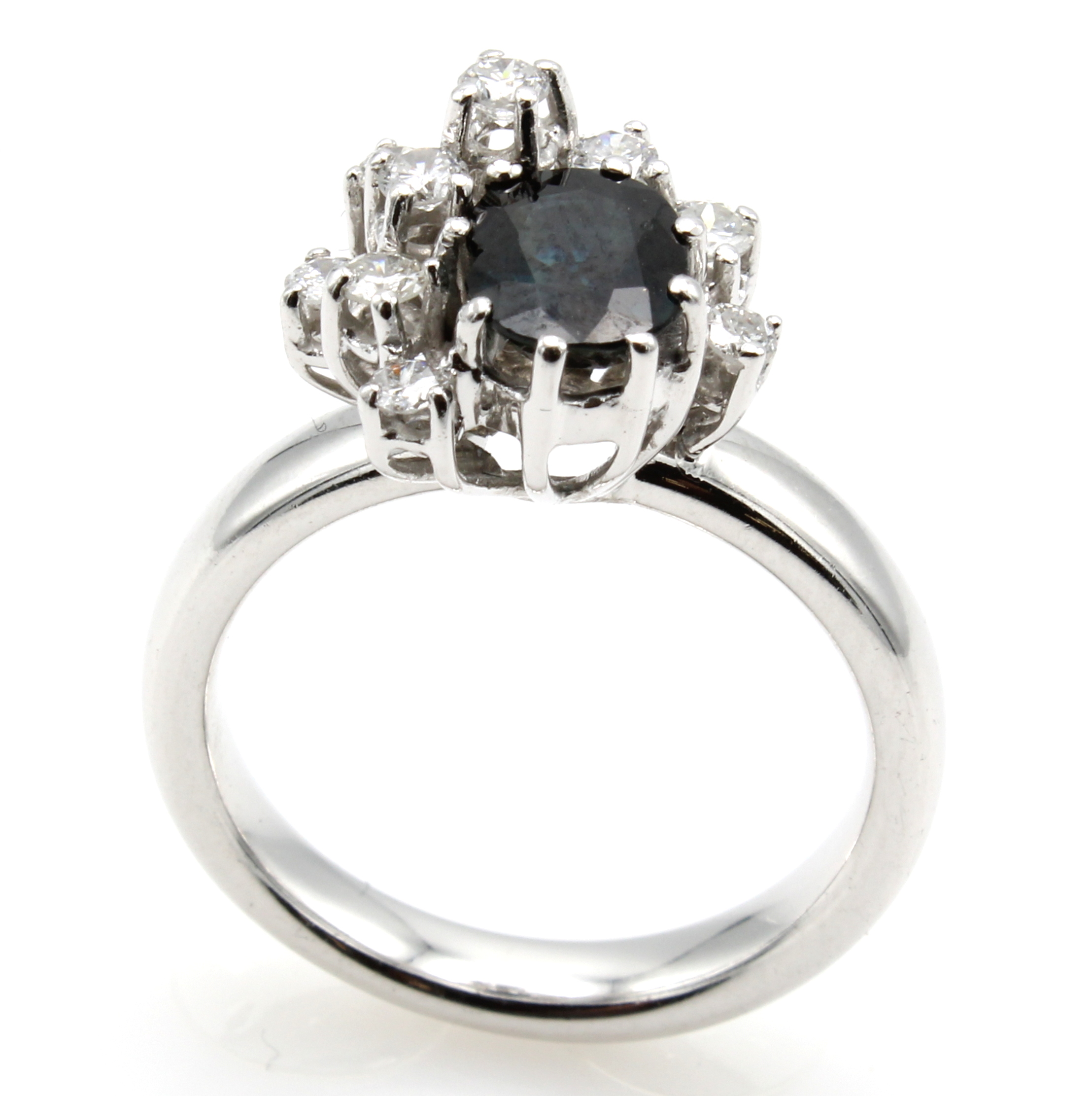Ring mit Saphir und Brillanten, WG 750/000, Brill. zus. ca. 0.30 ct Weiß/p1, ovaler Saphir, RW ca. 56 Schätzpreis: 4000, - EUR