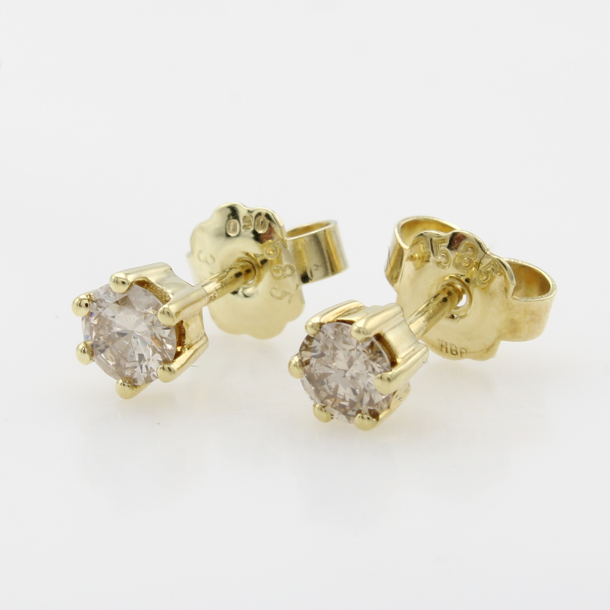 Paar Ohrstecker mit Brillanten, GG 585/000, 2 Brill. in 6er Krappenfassungen zus. ca. 0.50 ct top light brown/p Schätzpreis: 1600, - EUR