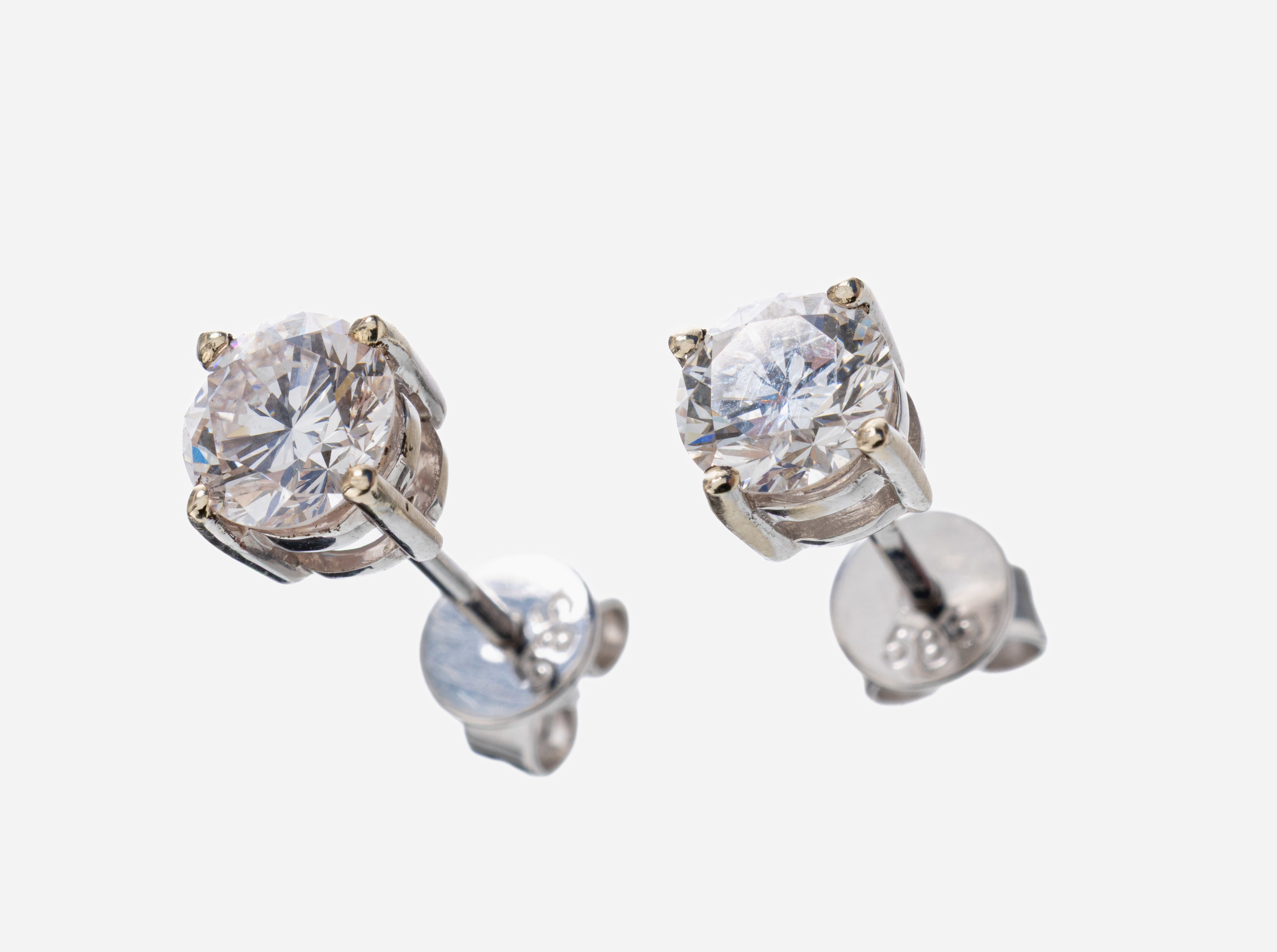 Paar 14 kt Gold Brillant-Ohrstecker, WG 585/000, 2 Brillanten zus. ca. 1.01 ct feines