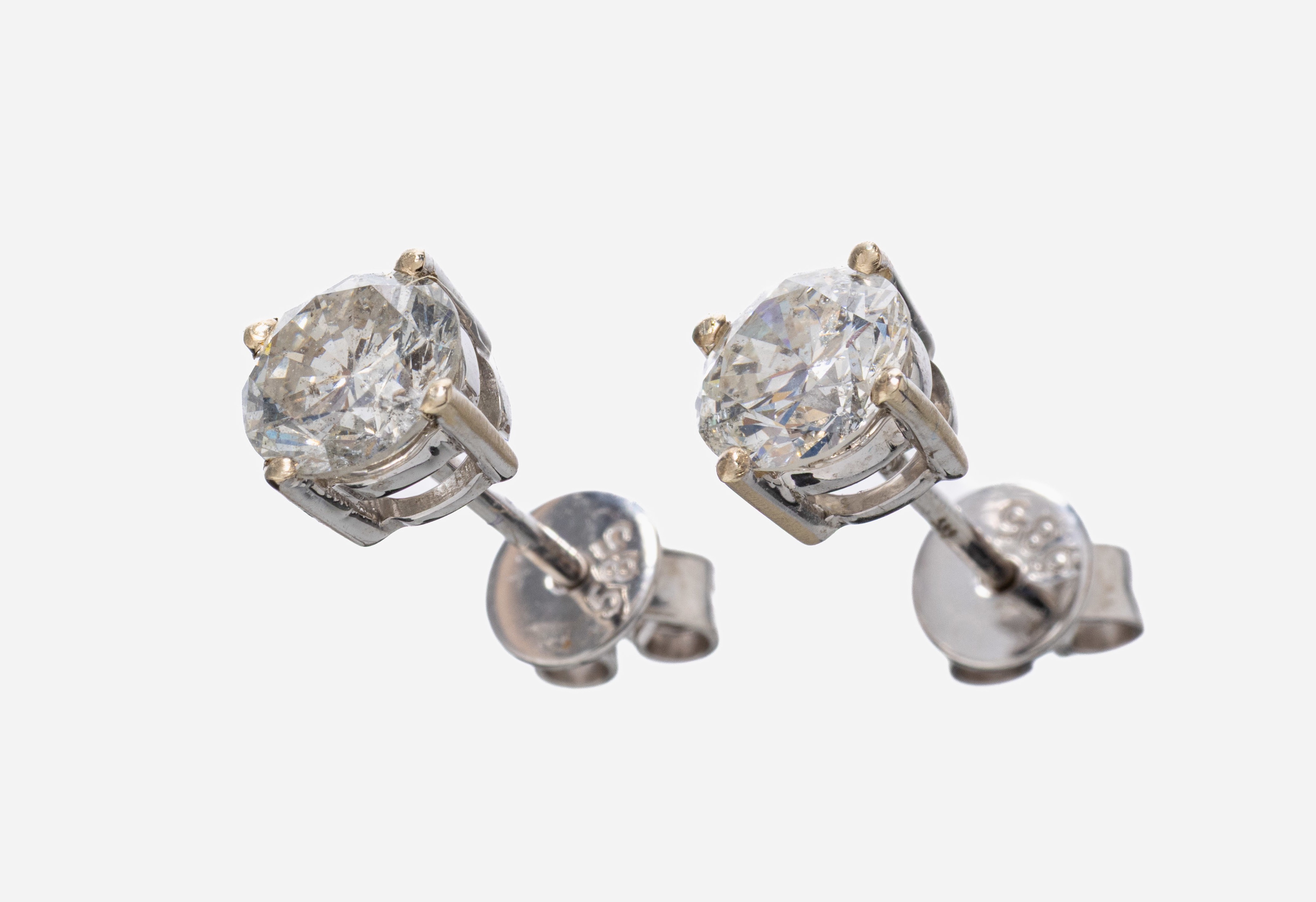 Paar 14 kt Gold Diamant-Ohrstecker, WG 585/000, 1 Brillant und 1 Altschliffdiamant zus. ca. 1.16 ct Weiß-l.get.Weiß/p, ca. 1.2 g