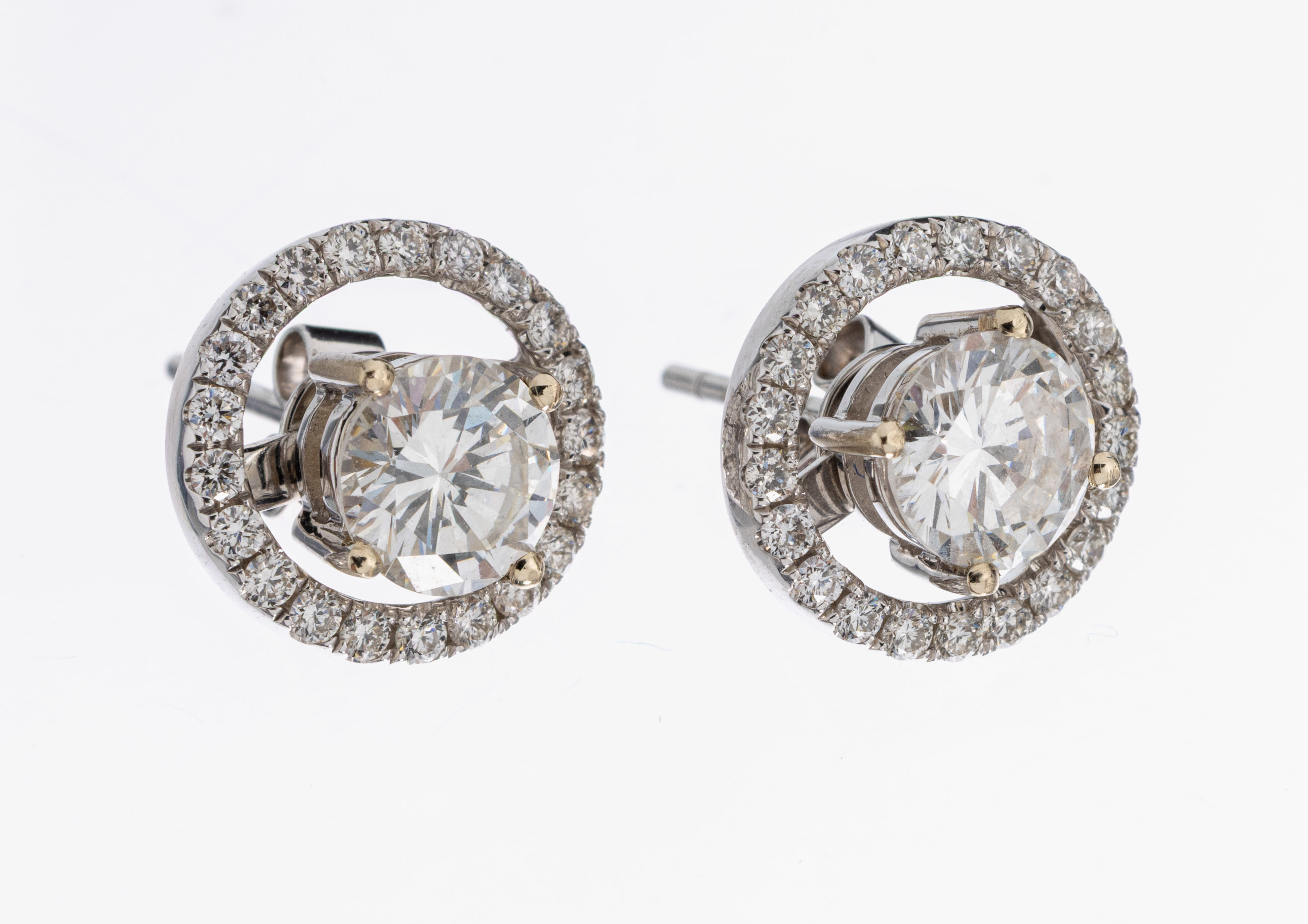Paar 18 kt Gold Brillant-Ohrstecker, WG 750/000, 2 Brillanten zus. ca. 1.50 ct Weiß/si, abnehmbare Kränze mit Brillanten zus.ca. 0.31 ct Weiß/vs-si