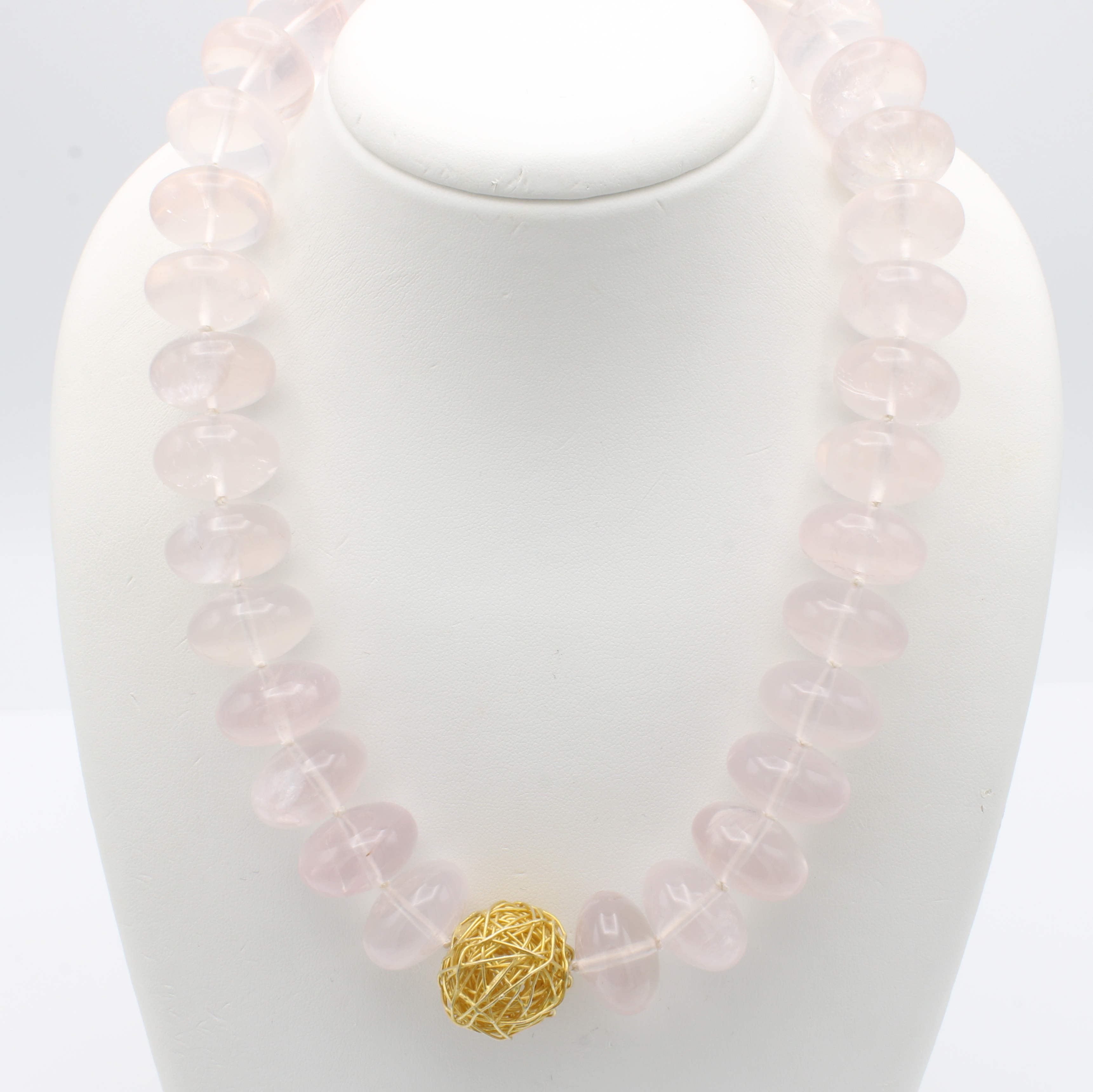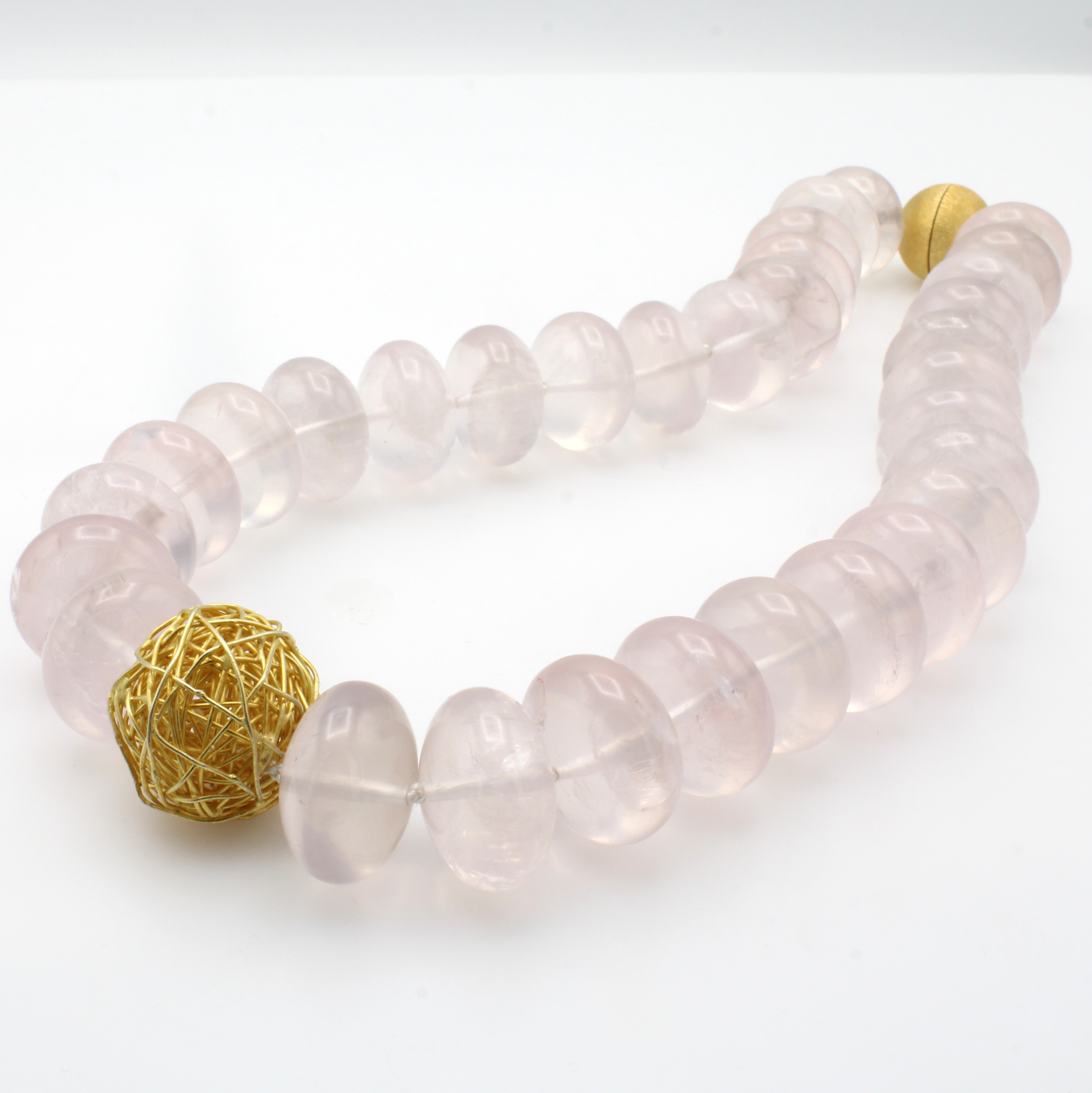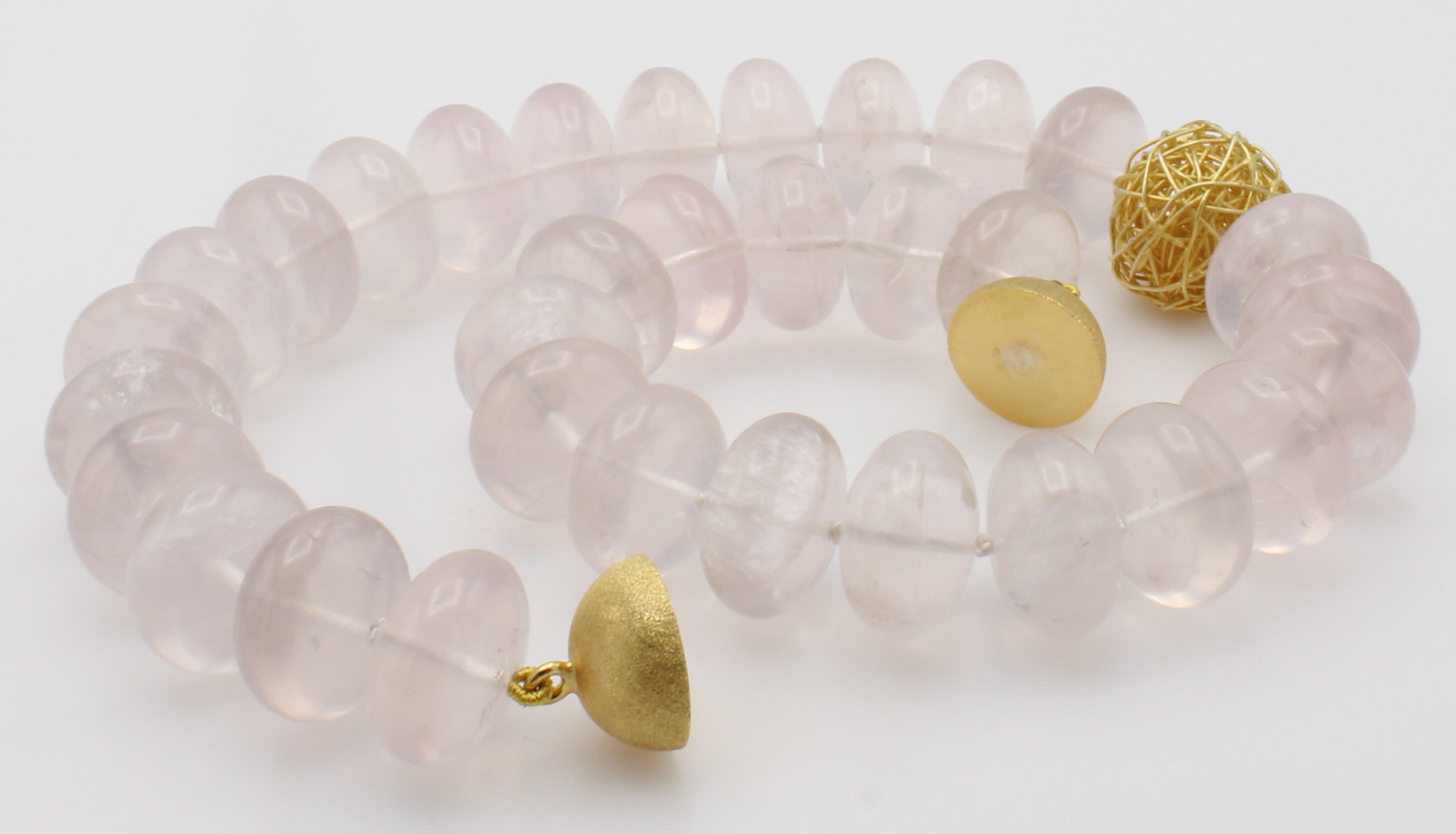 Rosenquarzcollier, Magnetschl. u. Zierdraht-kugel 925er Silber verg. z.T. sat. u. matt., Rosenquarzrondelle, L. ca. 48 cm, Schätzpreis EUR 1300.-