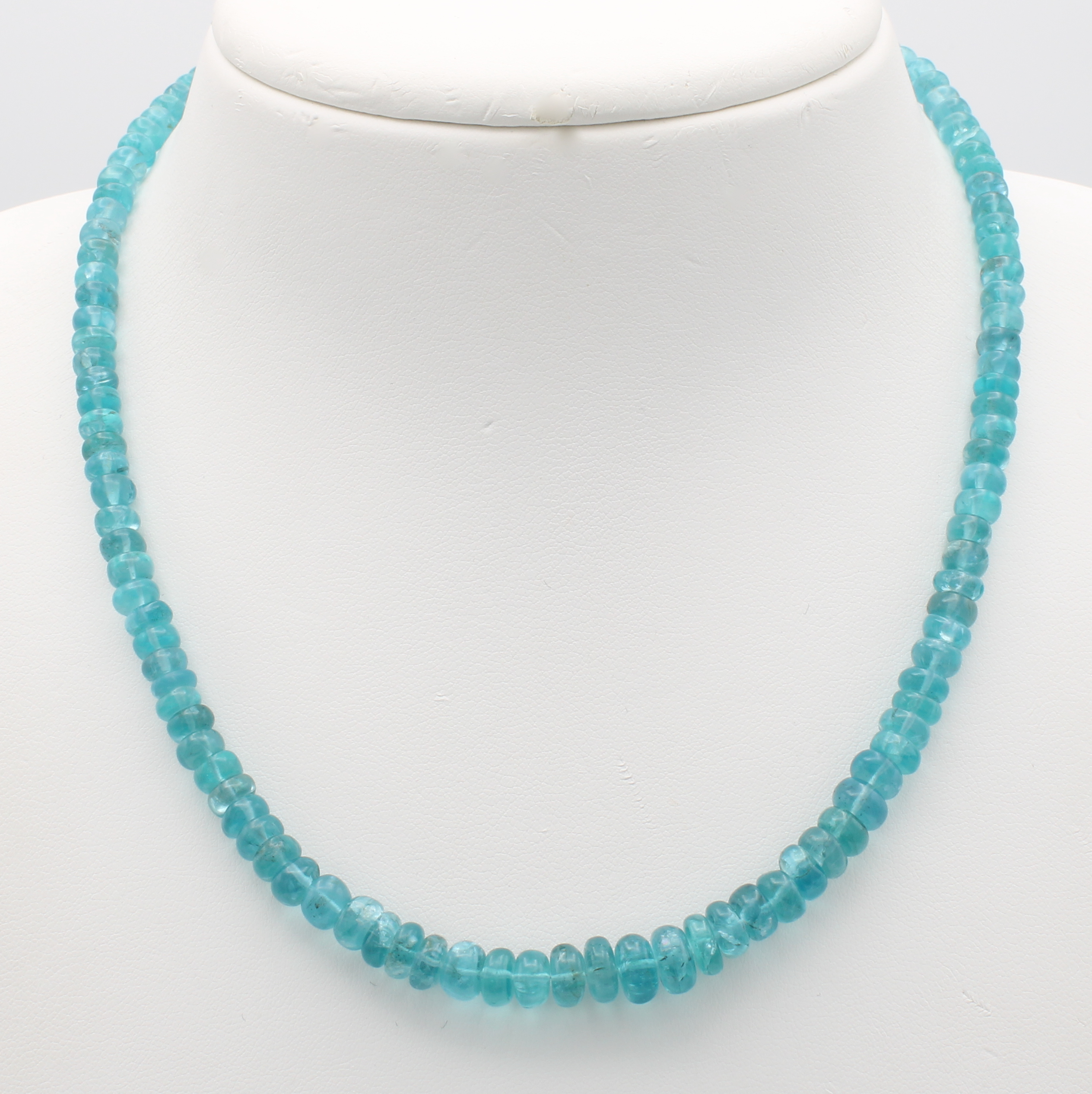 Apatitcollier, Kugelschl. GG 585/000, im Verlauf gearb., Apatitrondelle im Cabochon- schliff, unbehandelte Farbe, L. ca. 46 cm, Schätzpreis EUR 1500.-