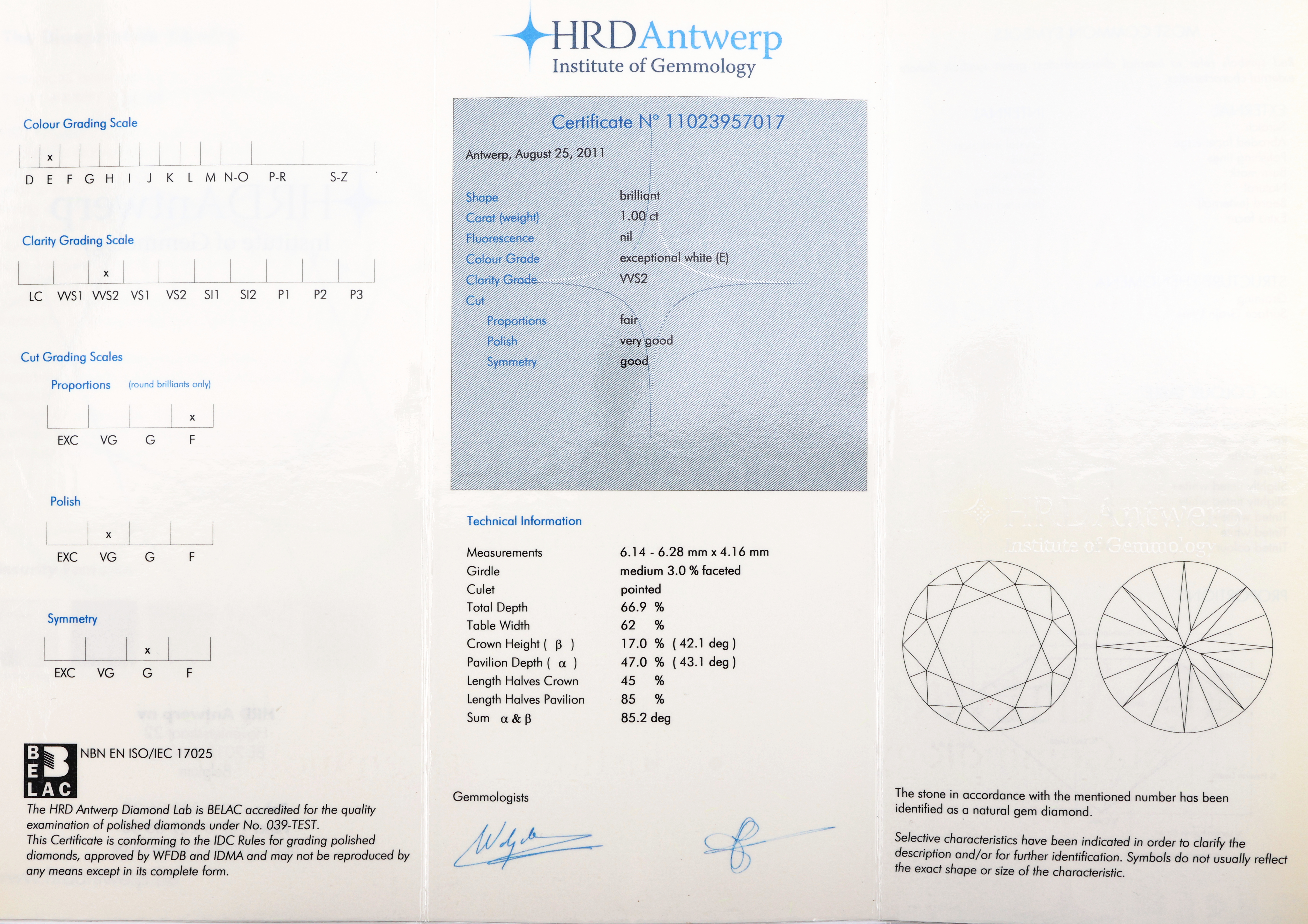 18 kt Gold Brillant-Ring, WG 750/000, mittig Brillant ca. 1.00 ct hochfeines Weiß(E)/vvs2,