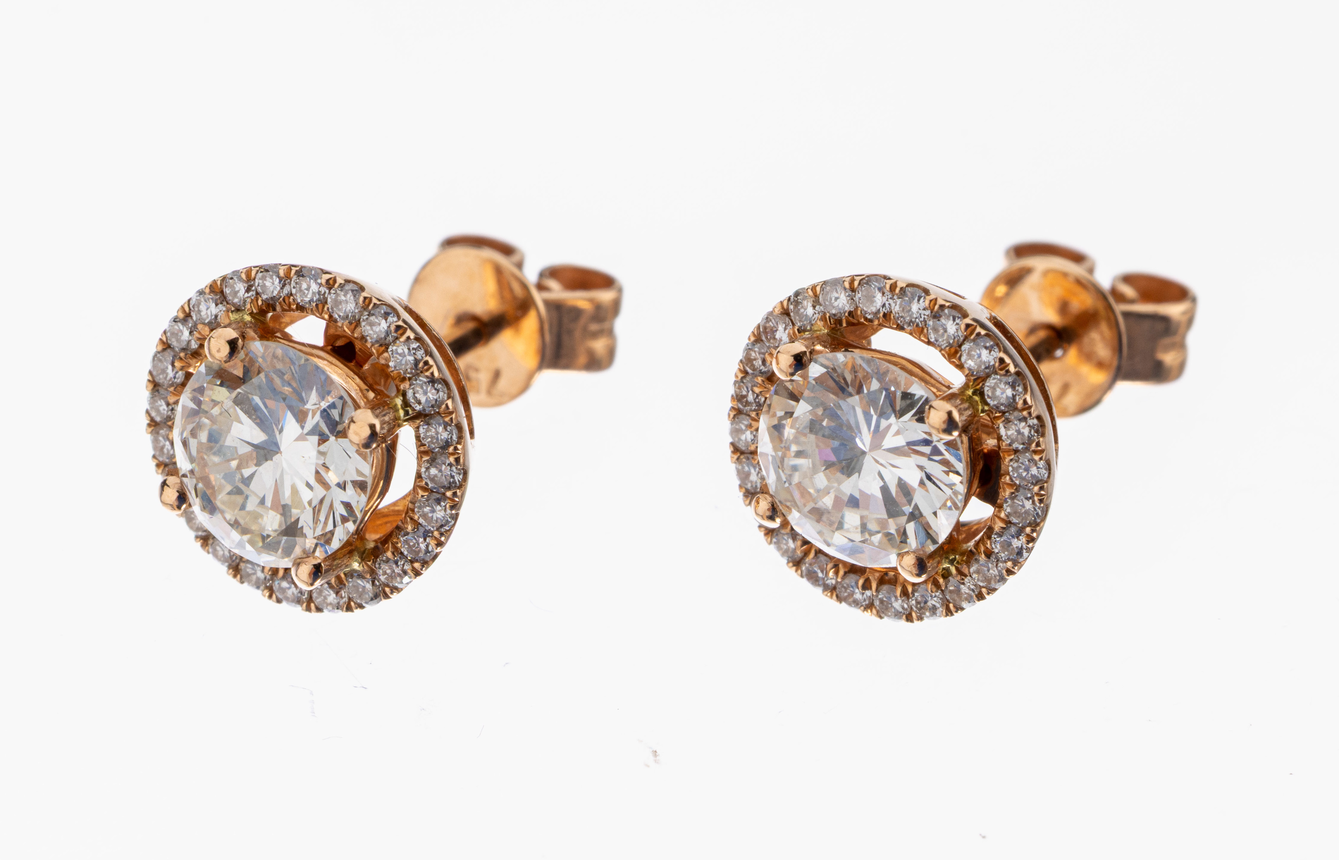 Paar 18 kt Gold Brillant-Ohrstecker, RG 750/000, 2 Brillanten zus. ca. 1.61 ct Weiß-l.get.Weiß/si,