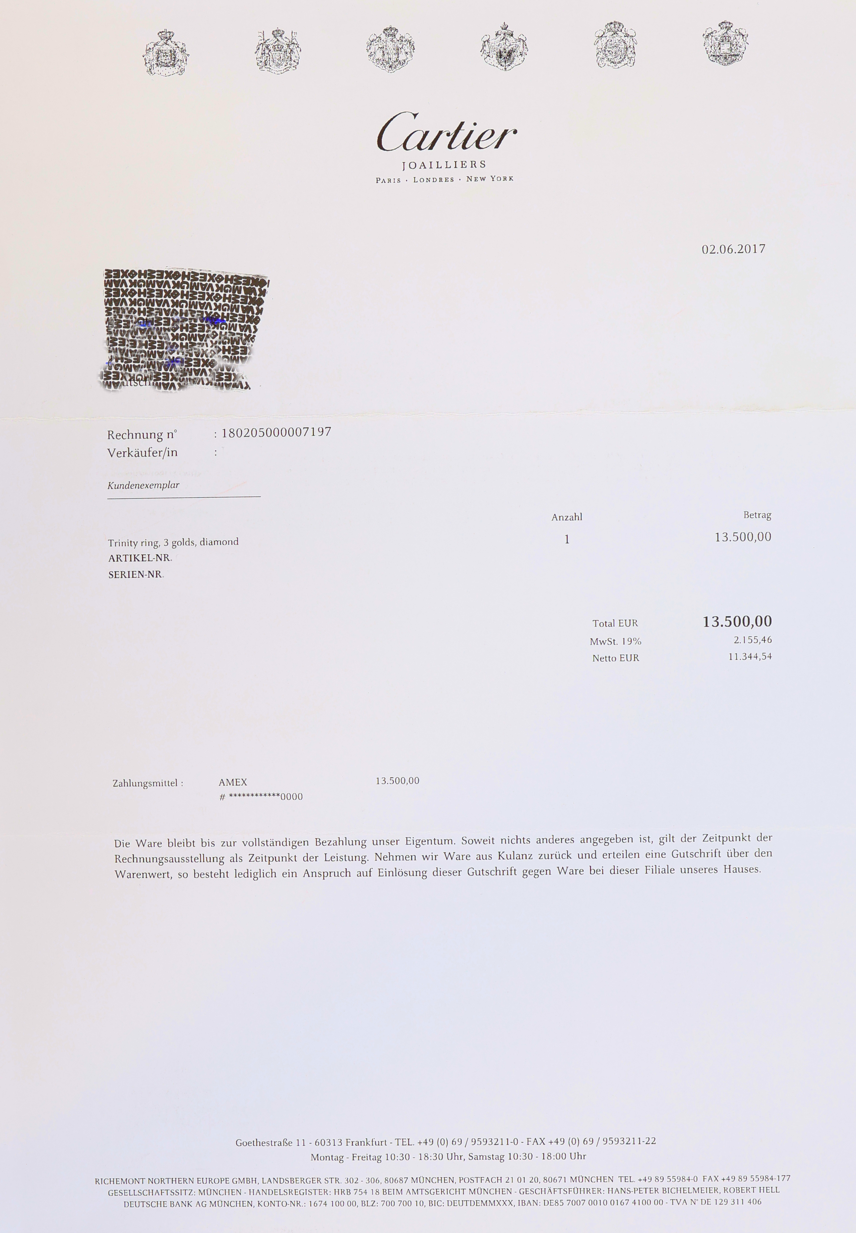 18 kt Gold CARTIER Brillant-Ring, GG/WG/RG 750/000, Trinity-Serie, Brillanten zus.