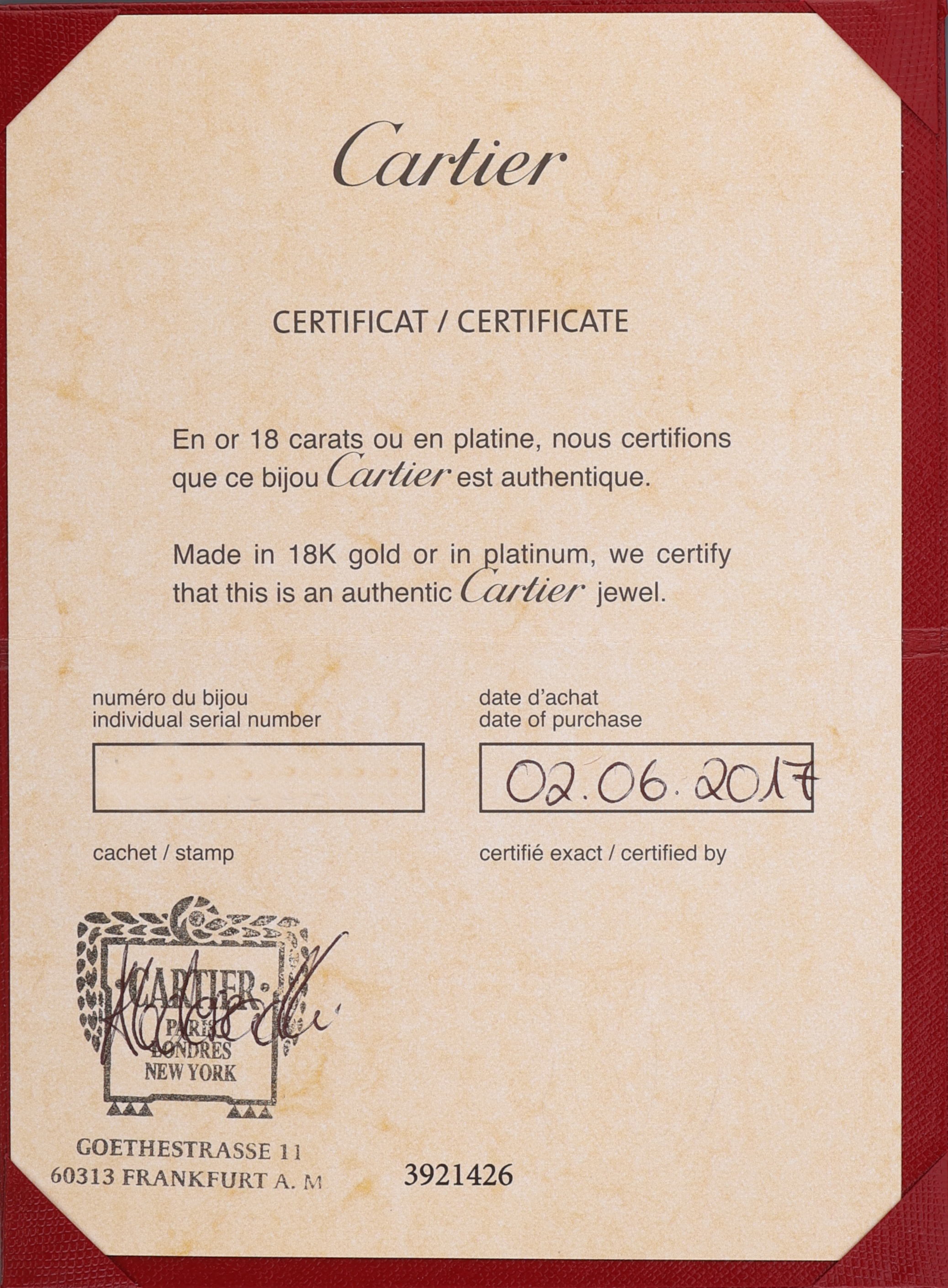 ca. 2.40 ct feines Weiß/vs, RW 52, ca. 9.5 g, sign., mit orig. Box und Zertifikat,